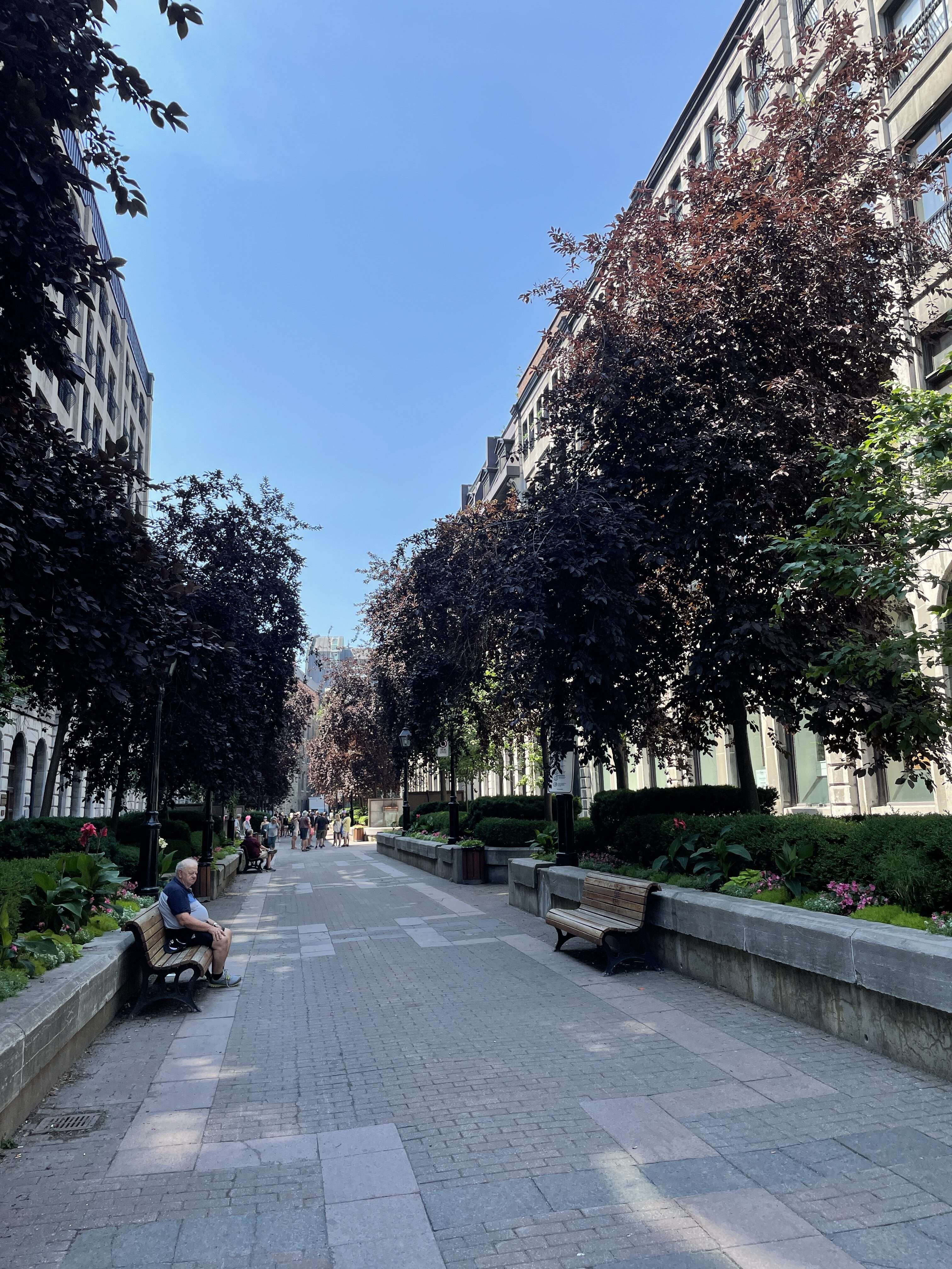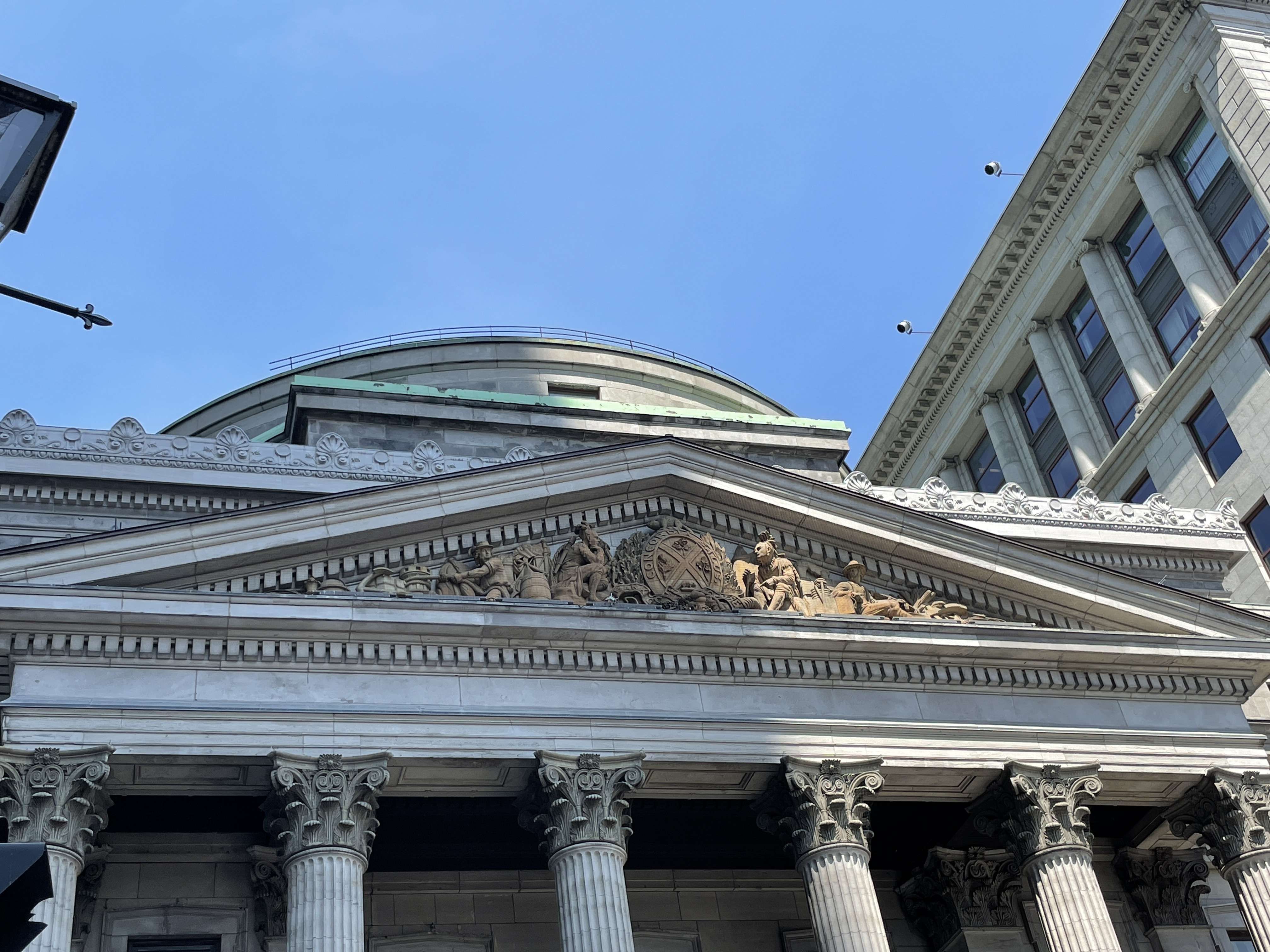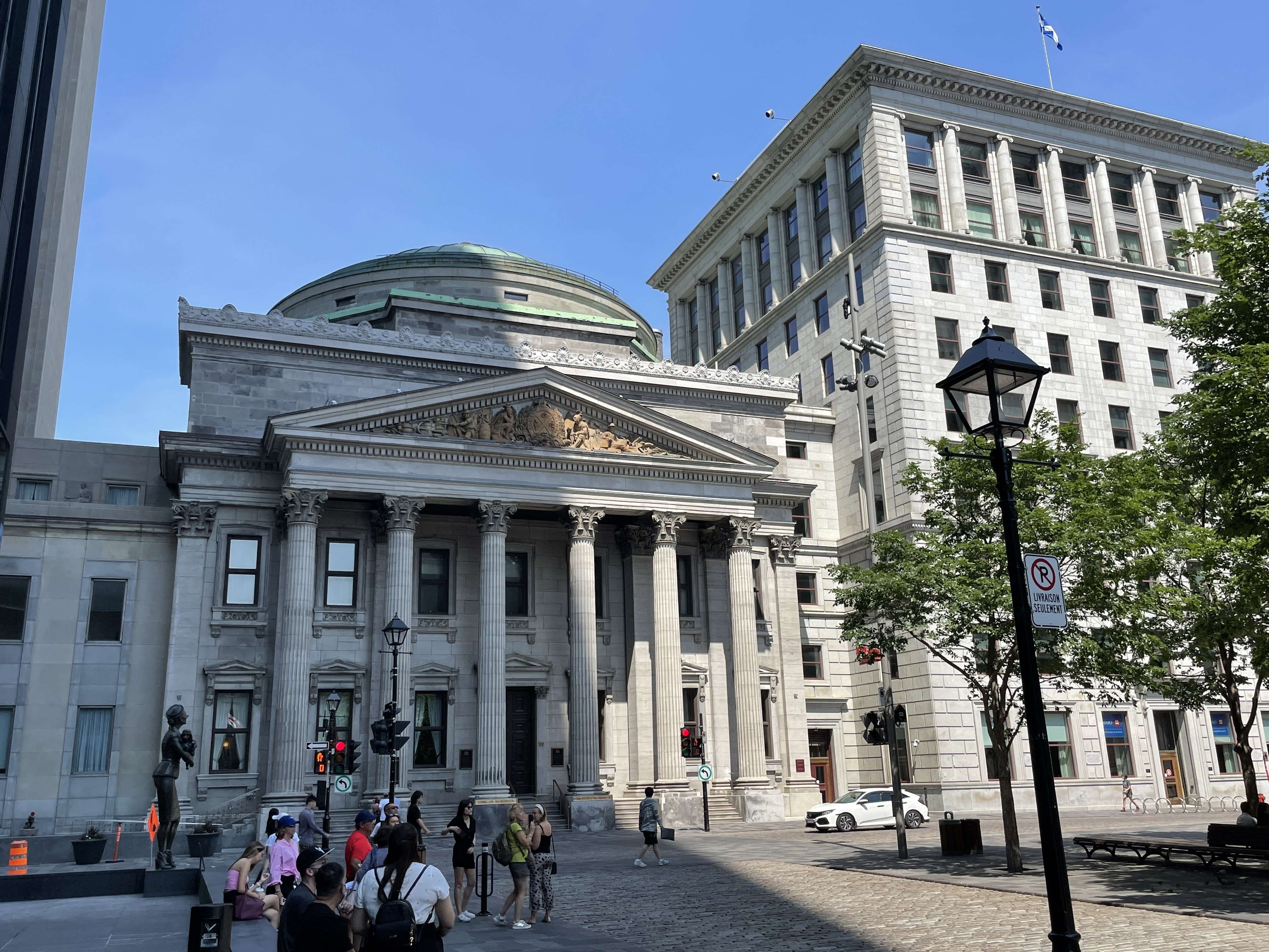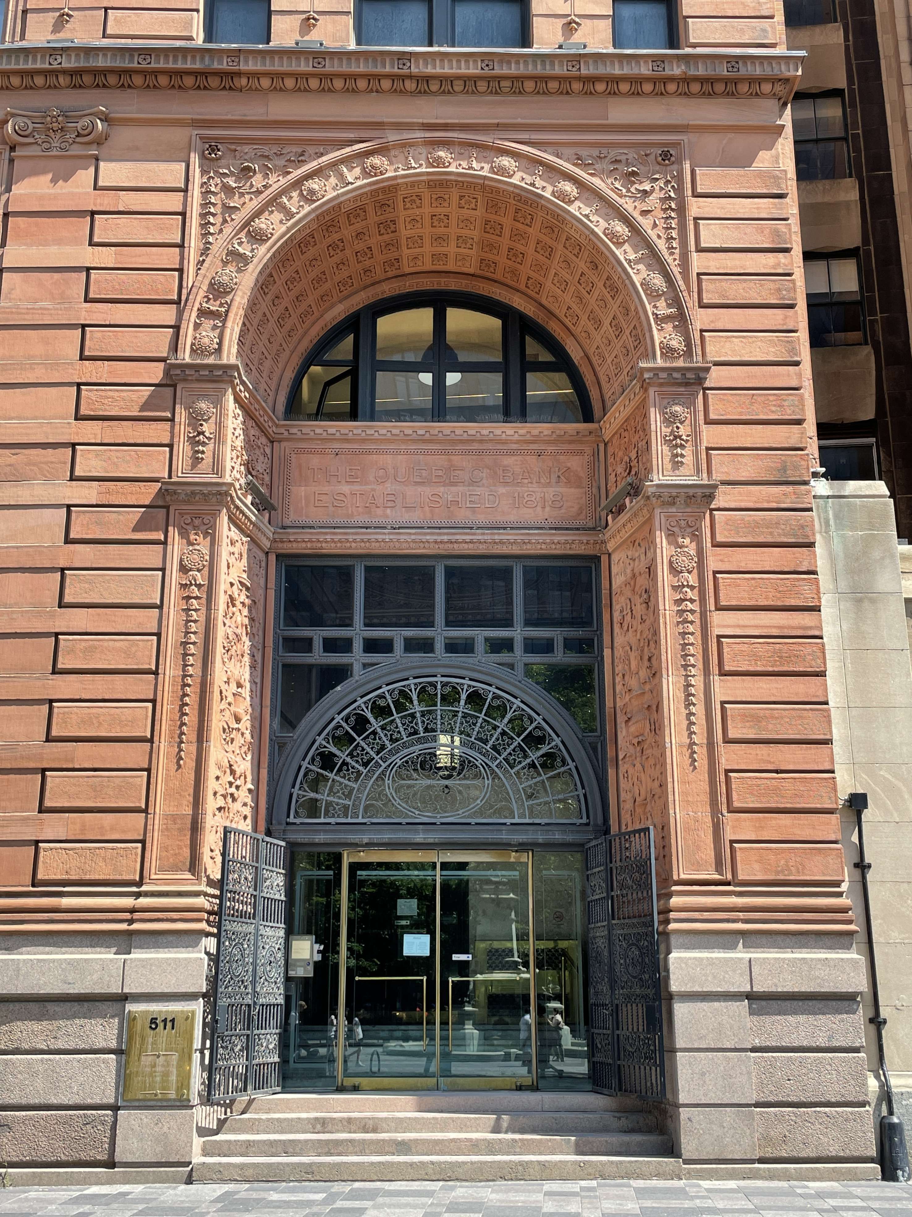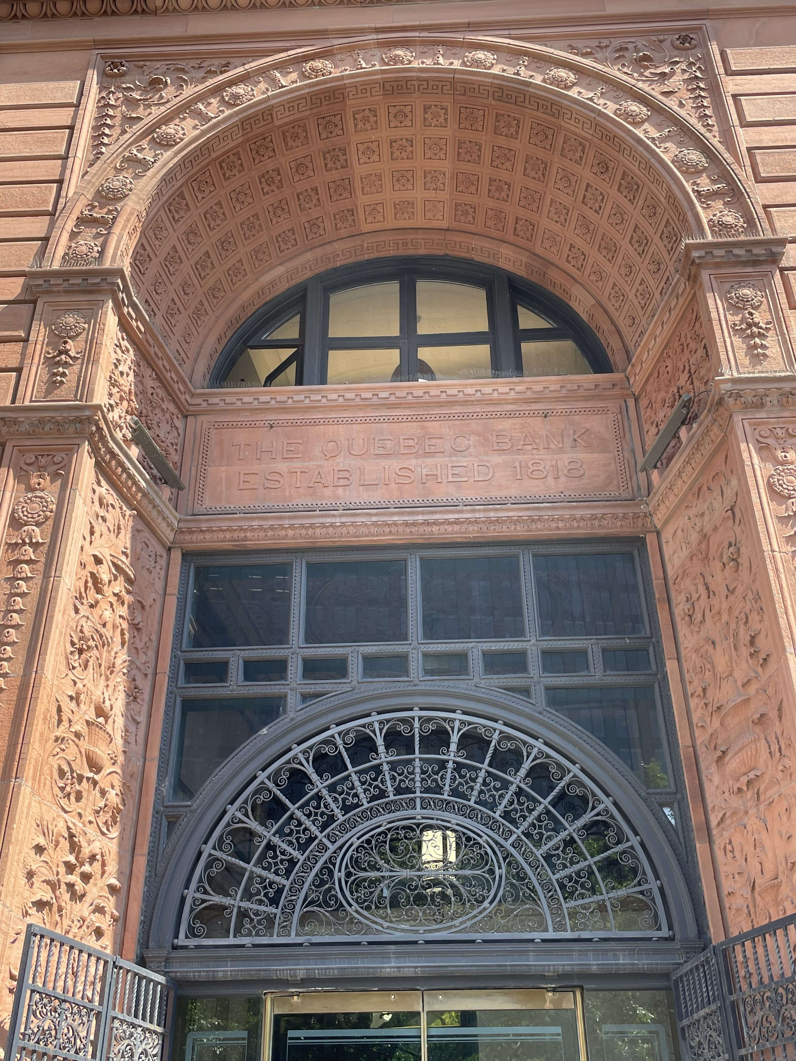 I returned later with my husband to tour the cathedral so for now I just enjoyed the exterior and wandered around the plaza. There are several historic banking buildings surrounding the plaza. Built between 1887 and 1889, the Quebec Bank Building was the city’s first skyscraper and stands out from the surrounding buildings because of its red sandstone exterior. Nearby, the Bank of Montréal Head Office built in 1847 resembles the Pantheon. Although still legally the bank’s headquarters, its primary purpose today is to house the Bank of Montréal Museum.