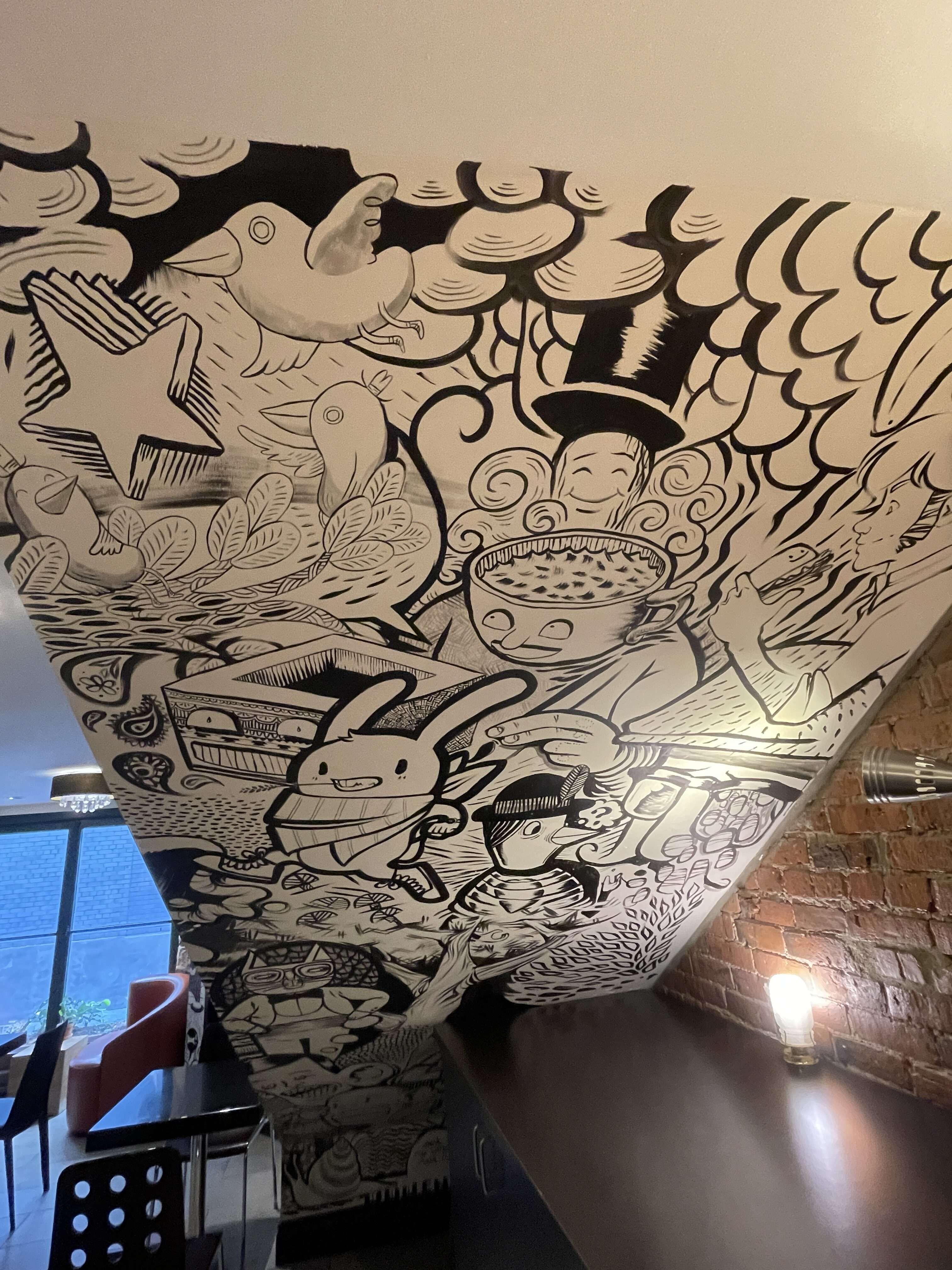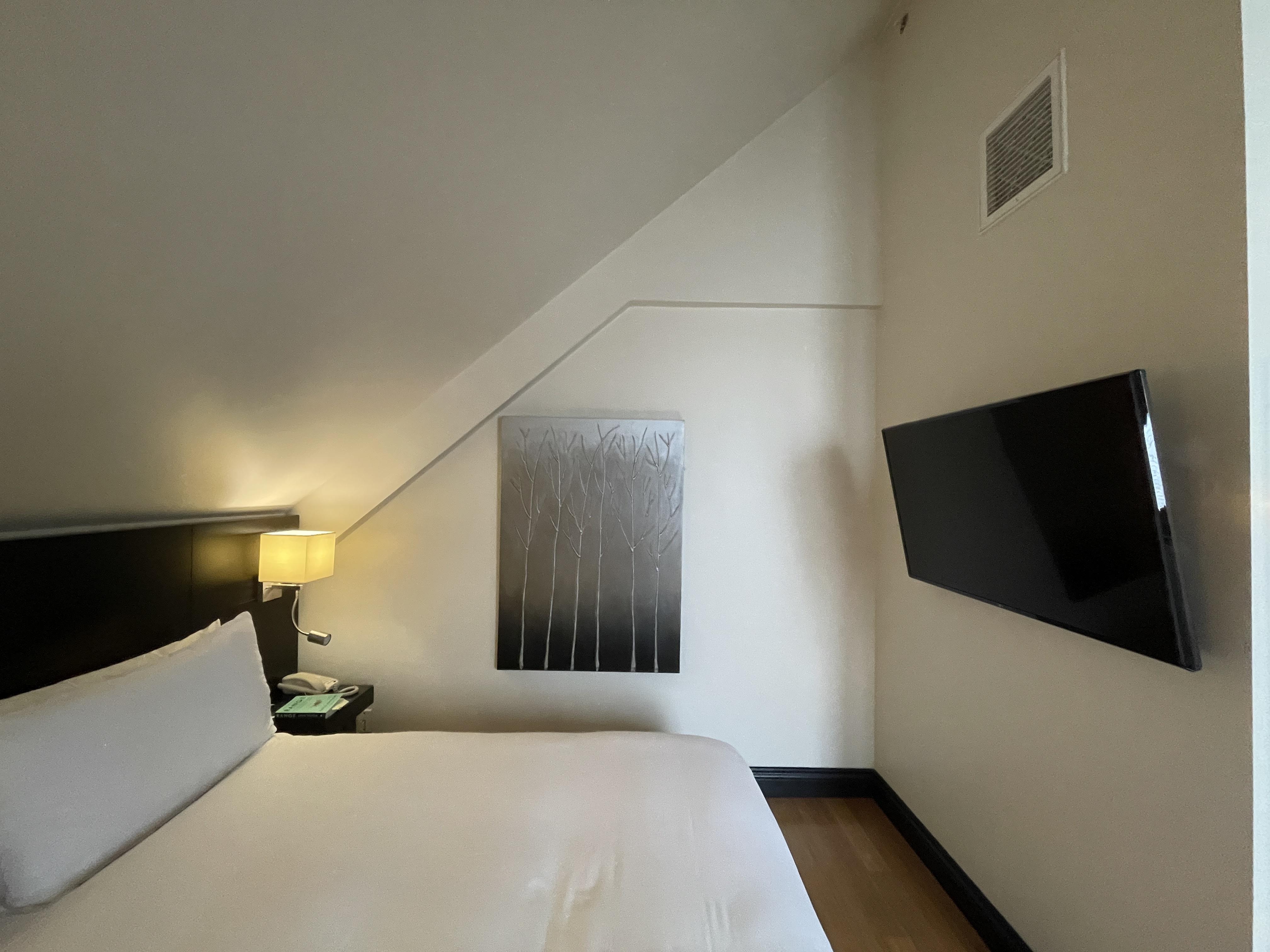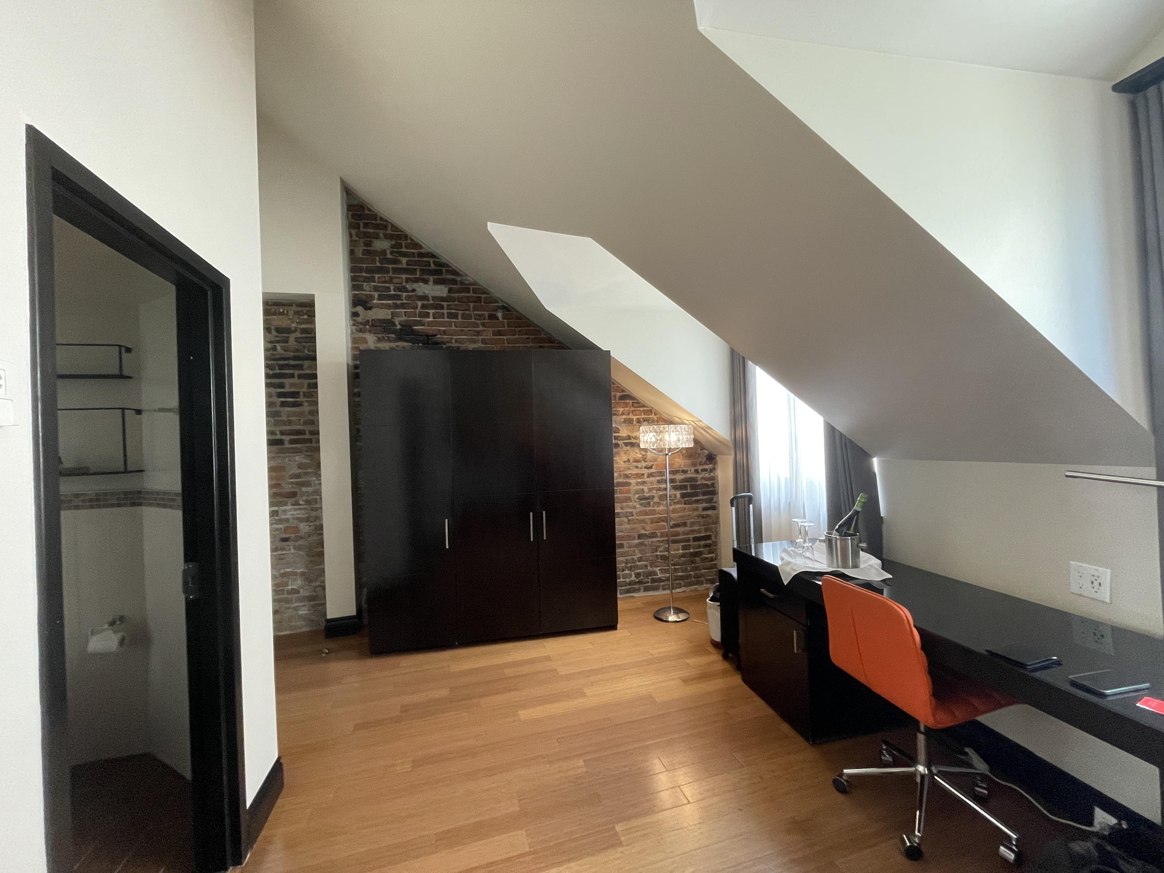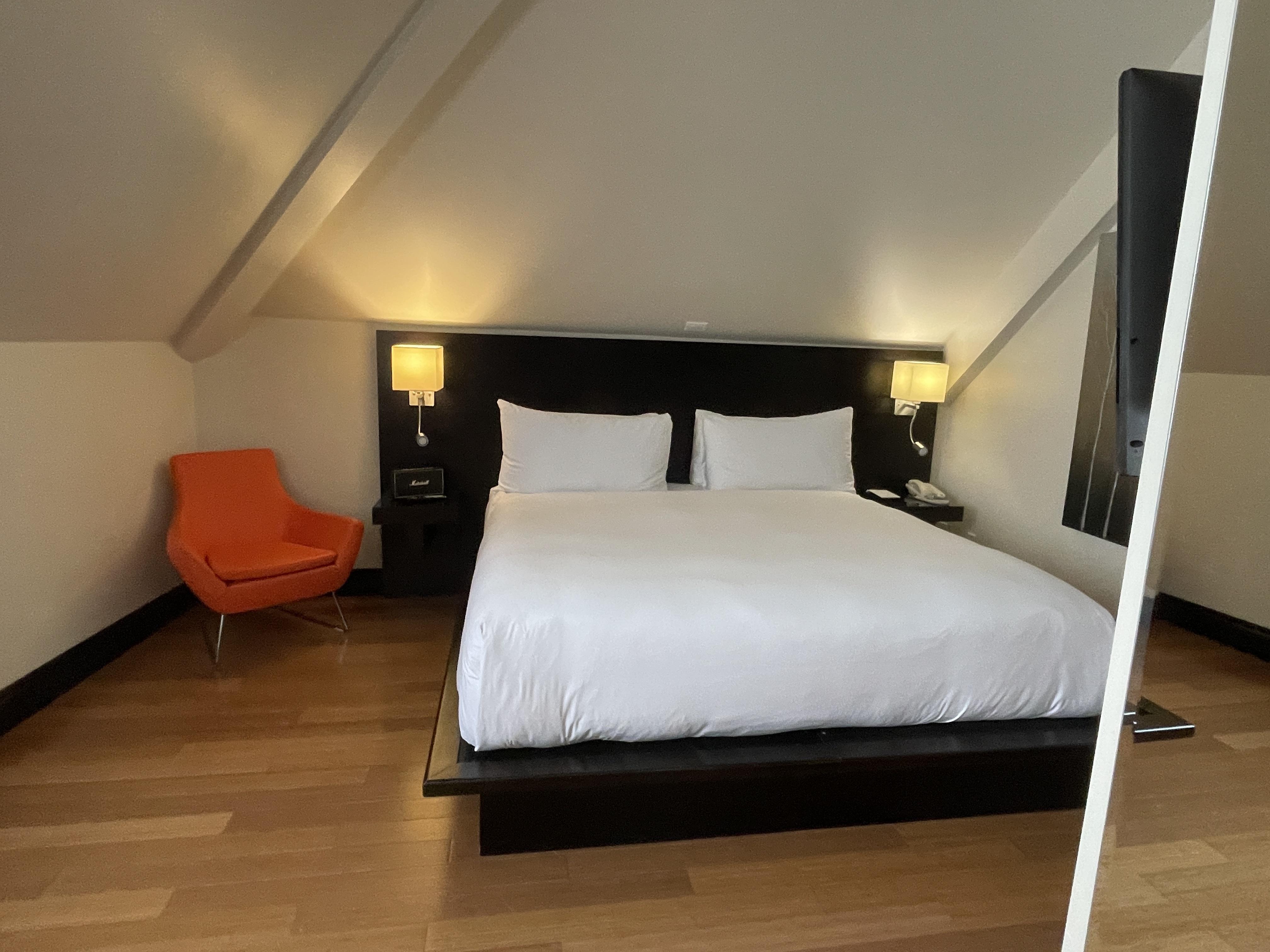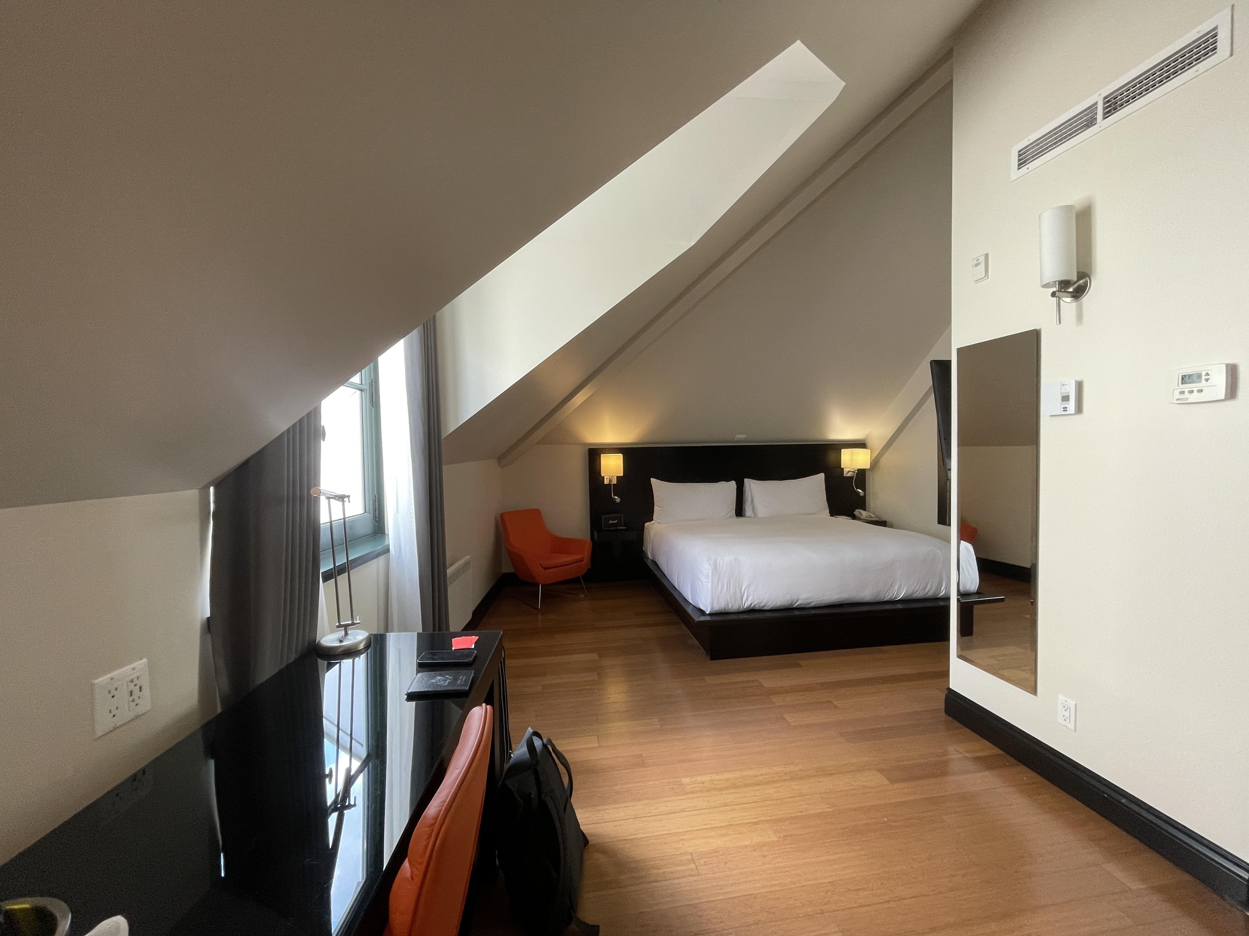Our room was really unique. With its cool vaulted ceilings and exposed brick wall, it felt like the room had been carved out of an attic nook. But it was bright and airy and had modern furniture. It was a great space.