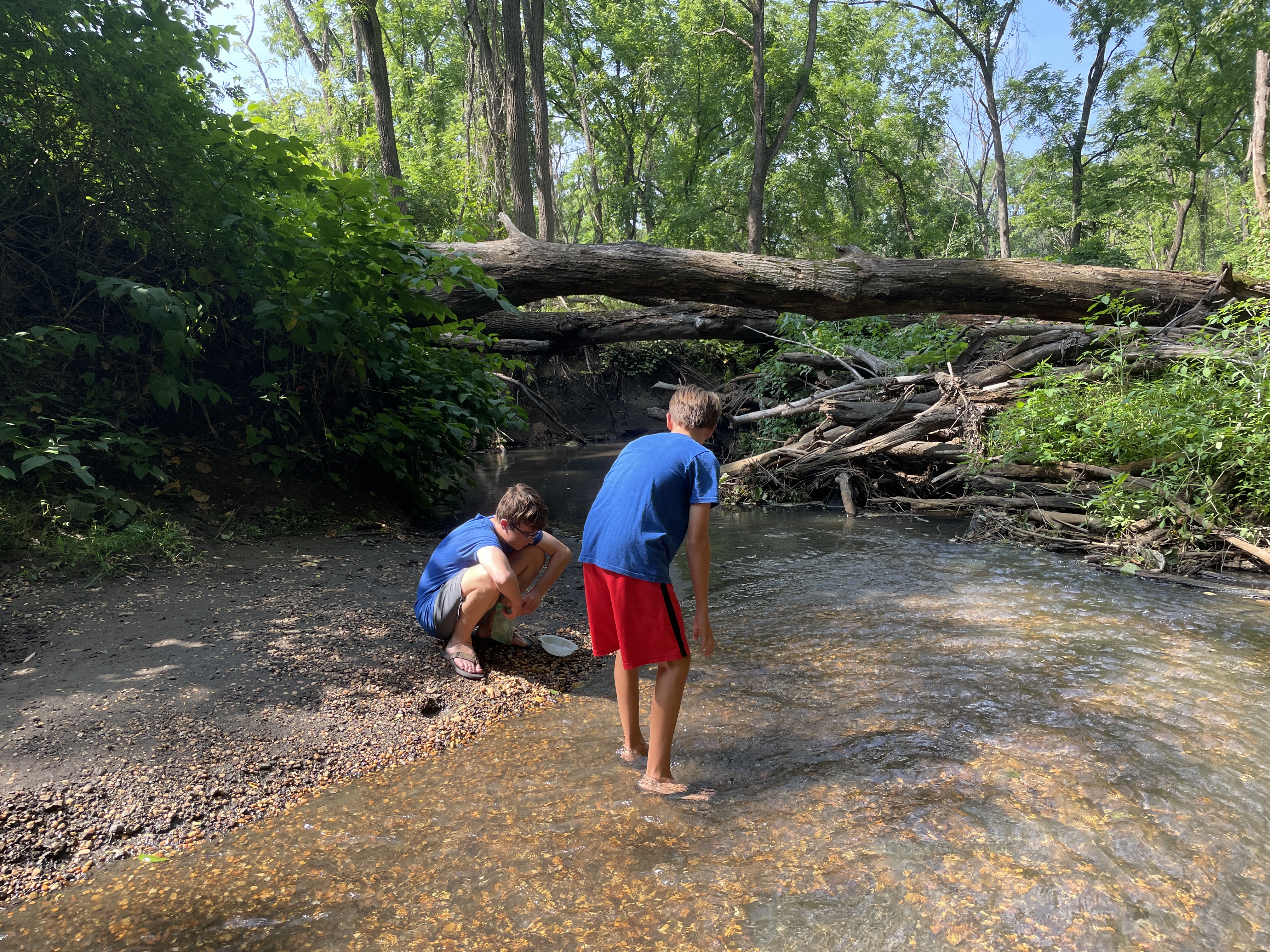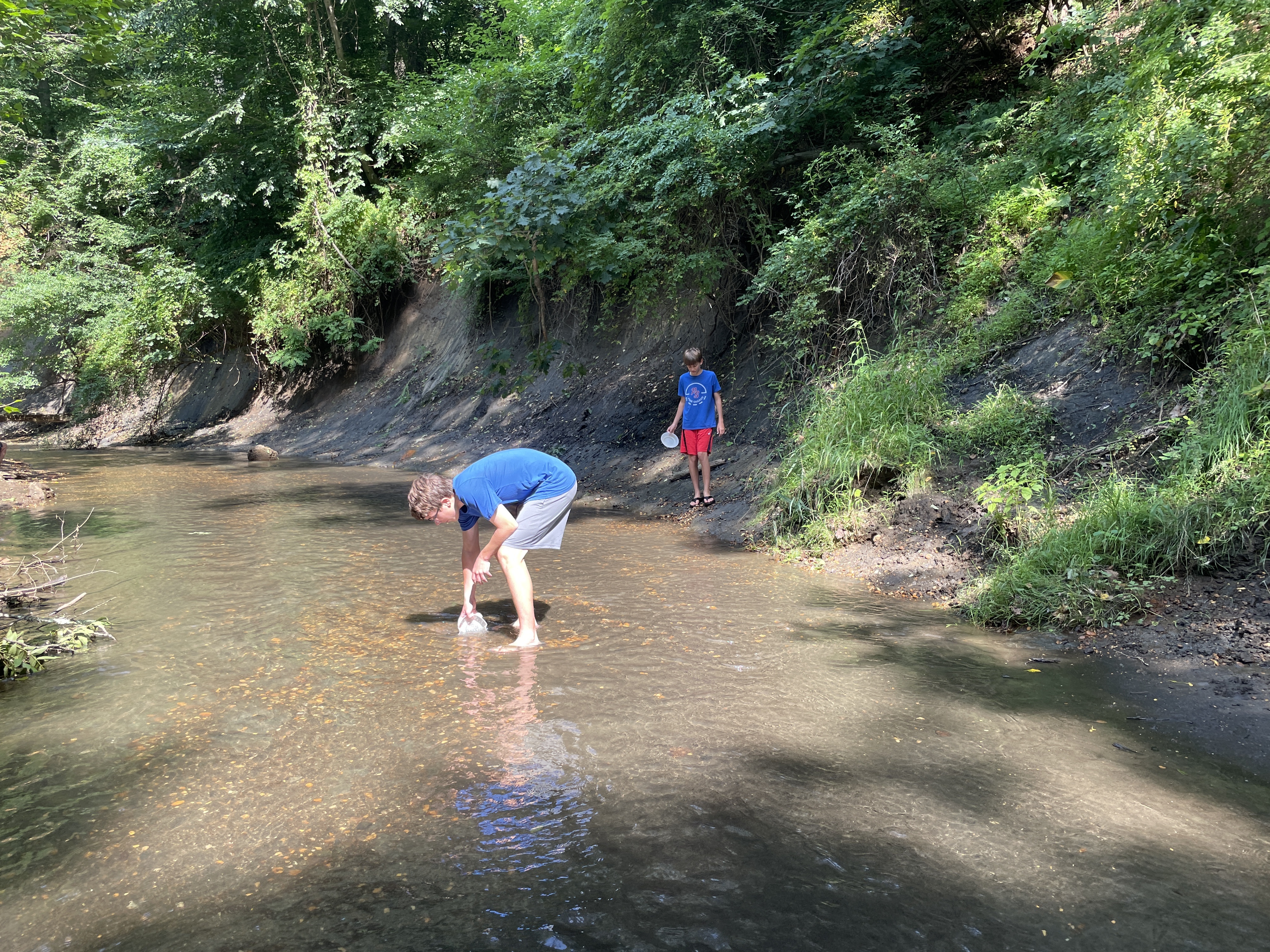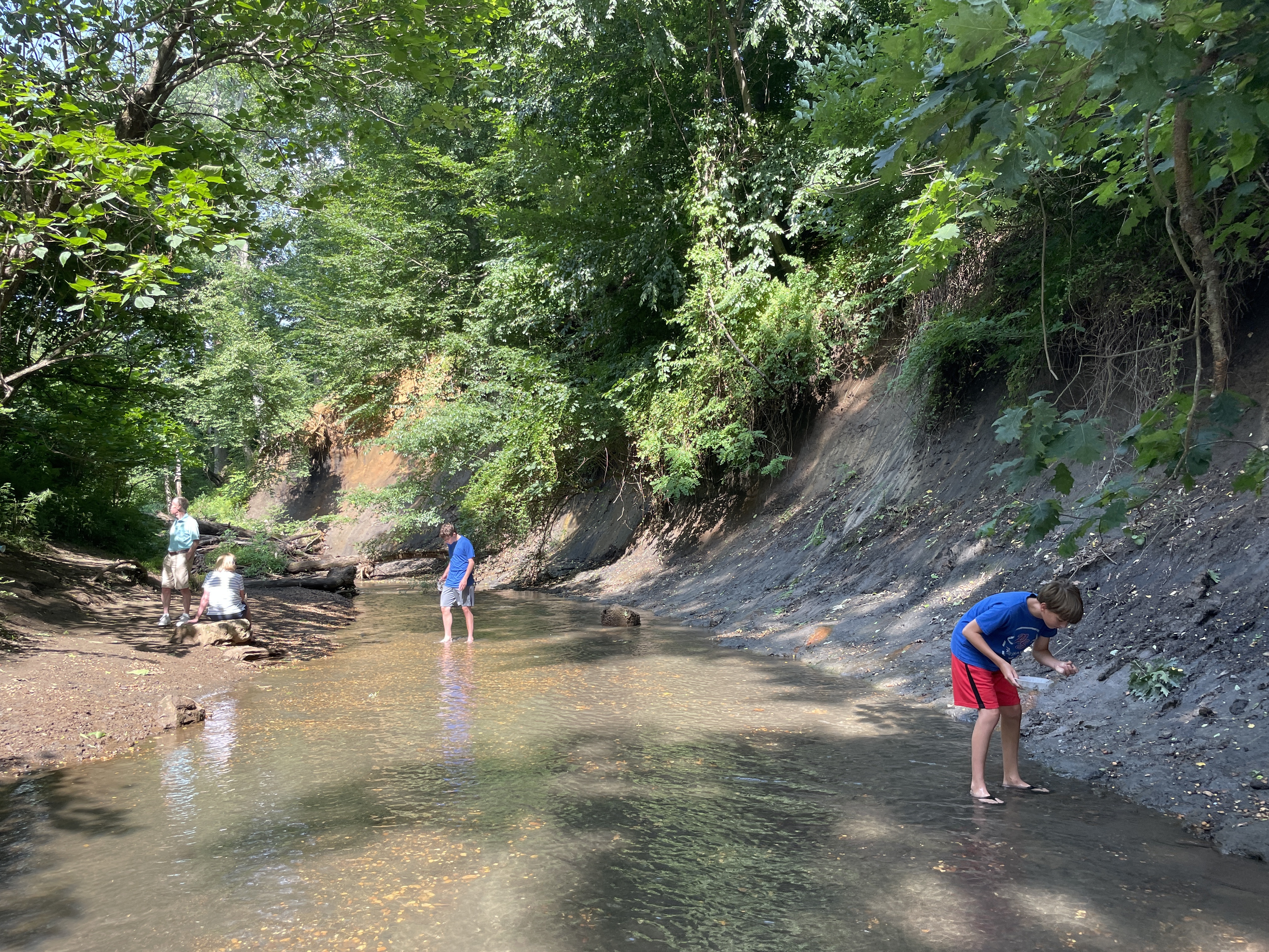 It was really pretty and peaceful along the creek. There were two other better-prepared young adult fossil hunters downstream from us, and we could hear a family with younger kids further downstream. But they all wandered in their own directions and it was mostly just us and the creek and its buried treasures.