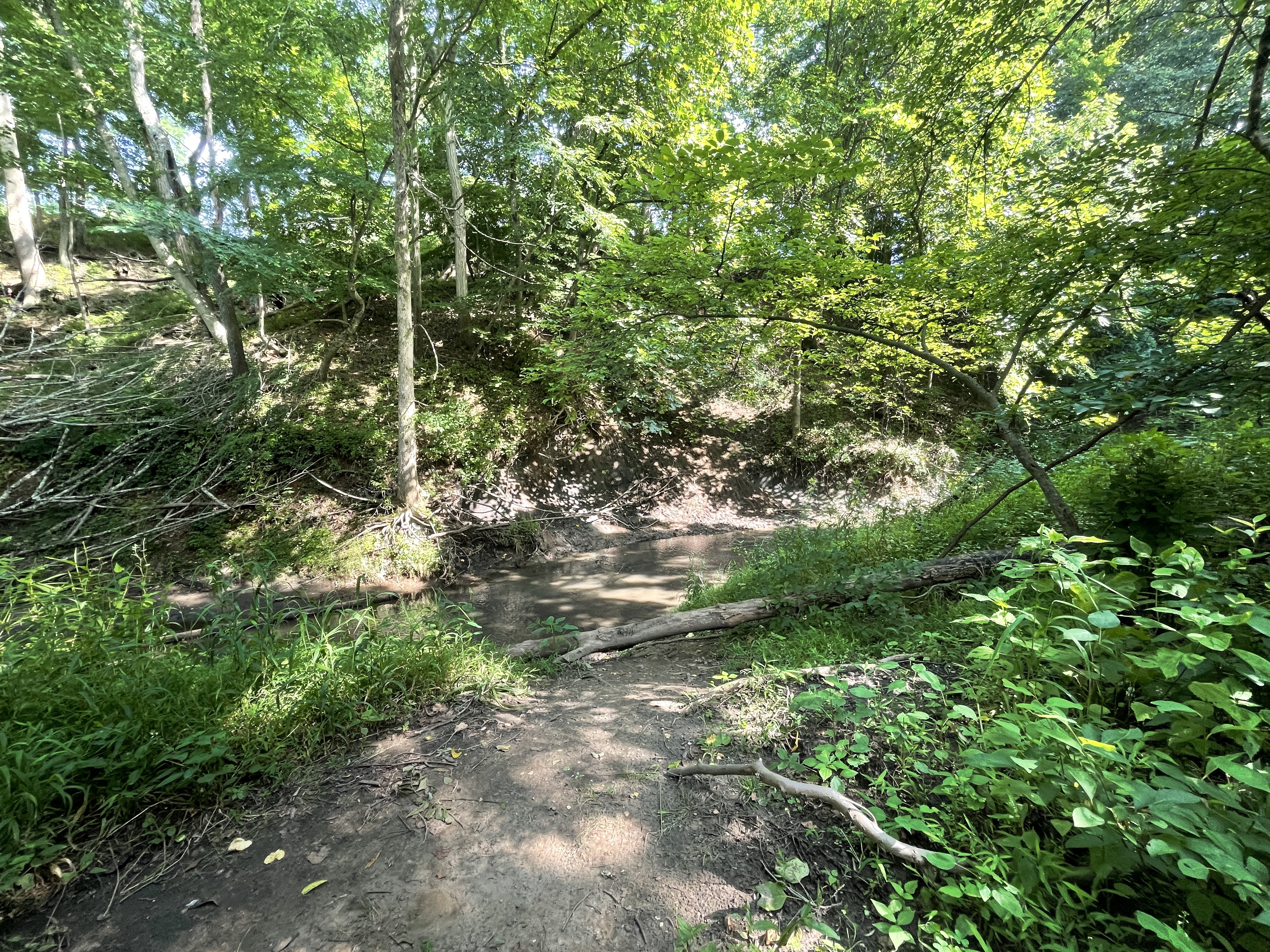 The creek was on our right and you could basically cut down to it at any point you deemed appropriate. We found a spot that seemed to have a small trail that had been worn down by previous fossil hunters and followed it to the creek.