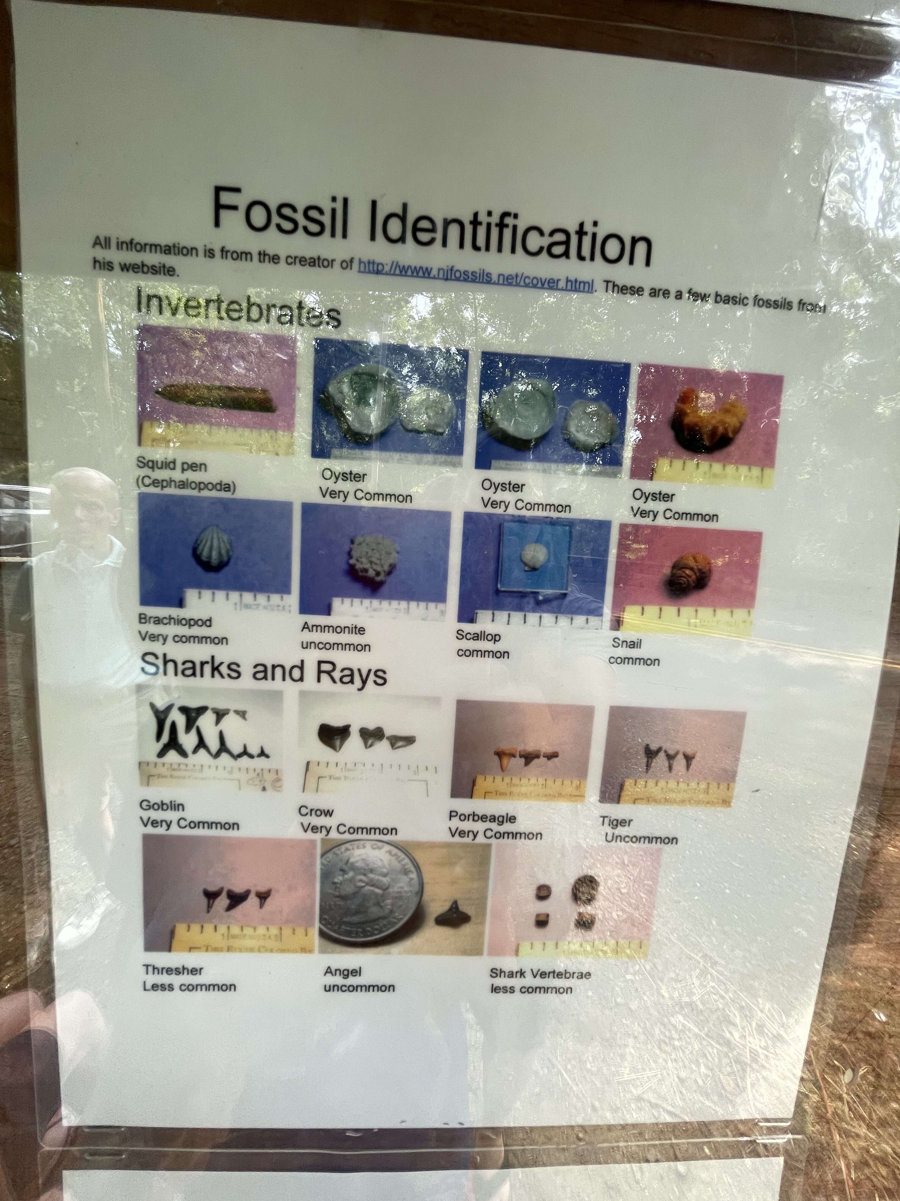 There is a handy Fossil Identification chart at the entrance to the trail that we used to identify their finds. More fossil identification information can be found online at njfossils.net.