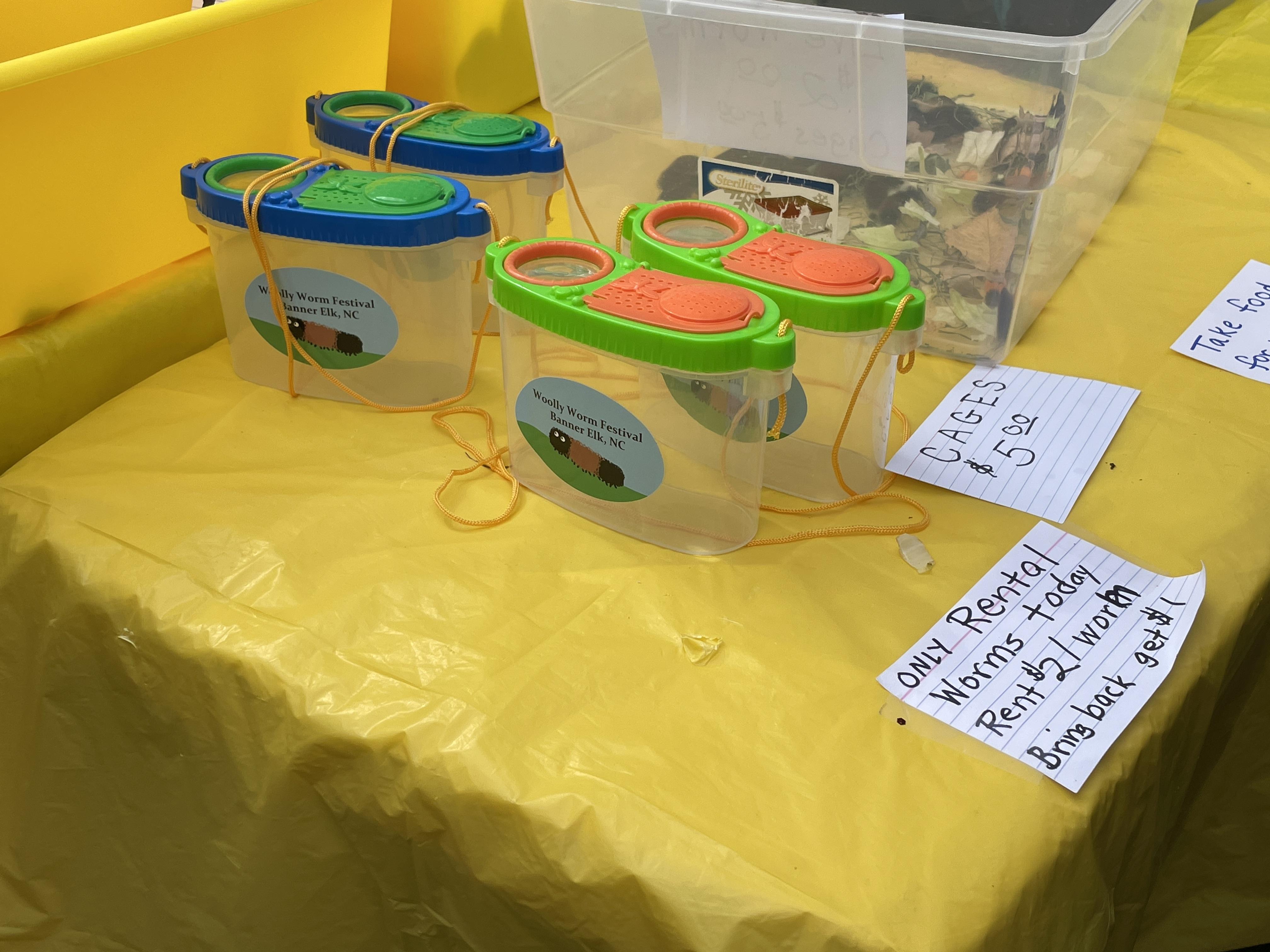 Although some people bring their own woolly worms, you can also purchase or rent them at the festival. In order to ensure there were enough worms to race all day on Sunday, the worms were only available for rental on that day. For $2 you could rent a worm for your race(s) and then collect $1 back if you returned it at the end. (There was also a spot on the stage to donate them, essentially forgoing your $1 deposit.)