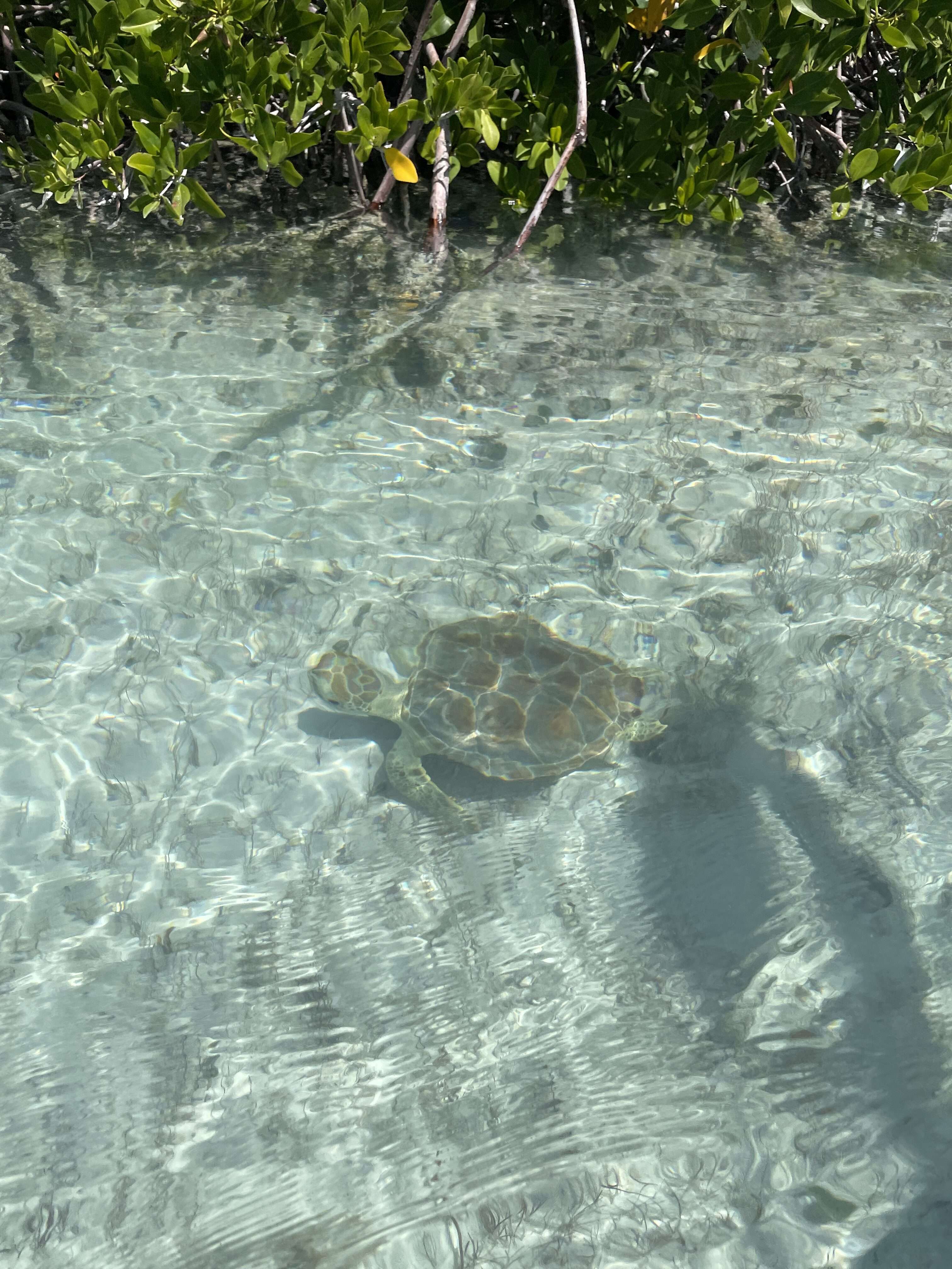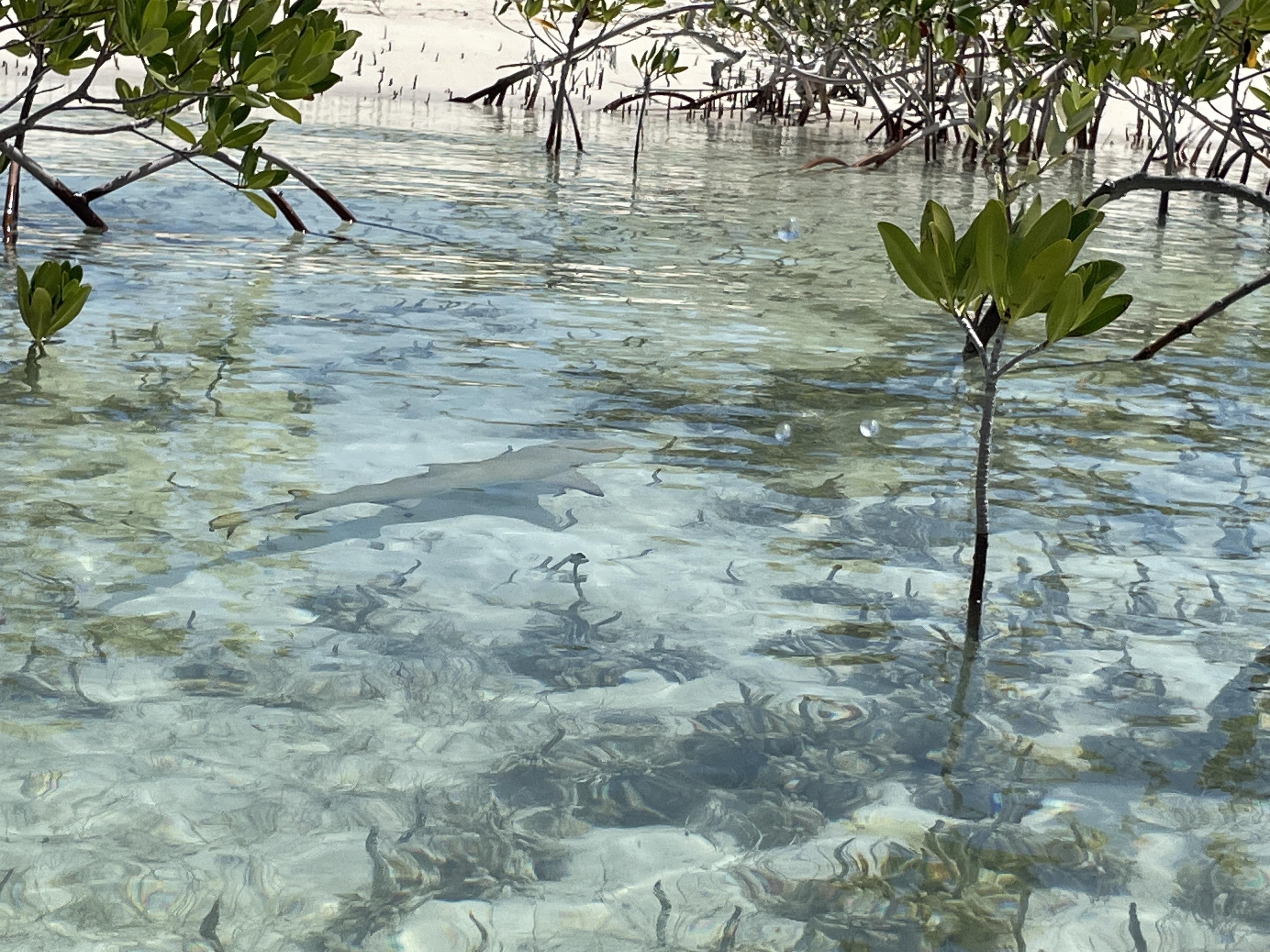 Aside from the many sea turtles we saw in the mangroves, we also spotted some sharks! Harmless lemon sharks and nurse sharks can be found in the mangroves. We spotted a few, although they move a lot faster than the turtles and were hard to get a good look at. Mitch did wade through the water at one point to gently lead one in our direction so we got a better view.