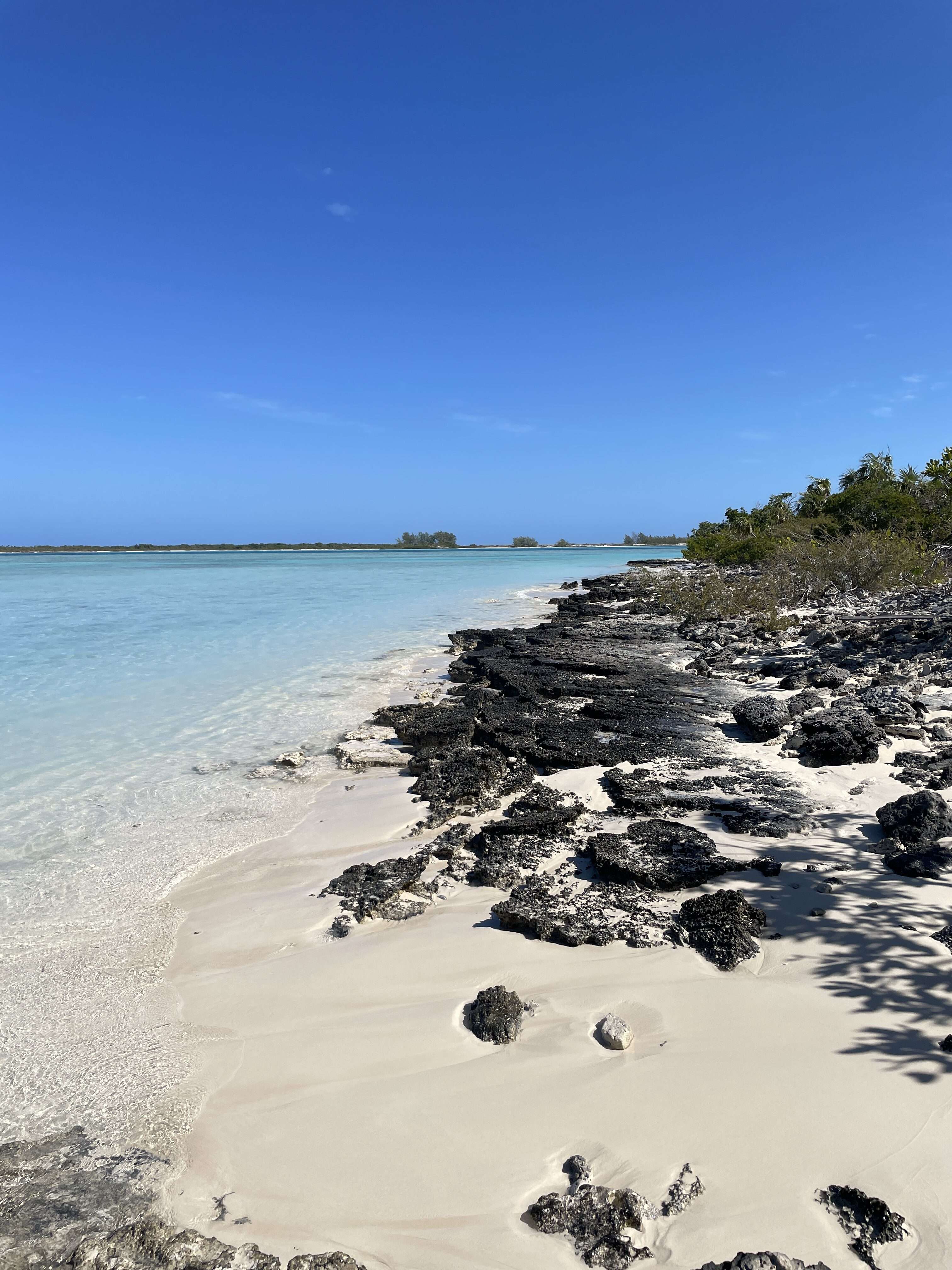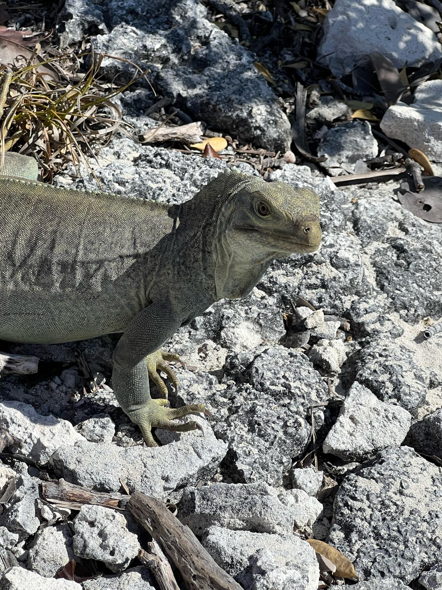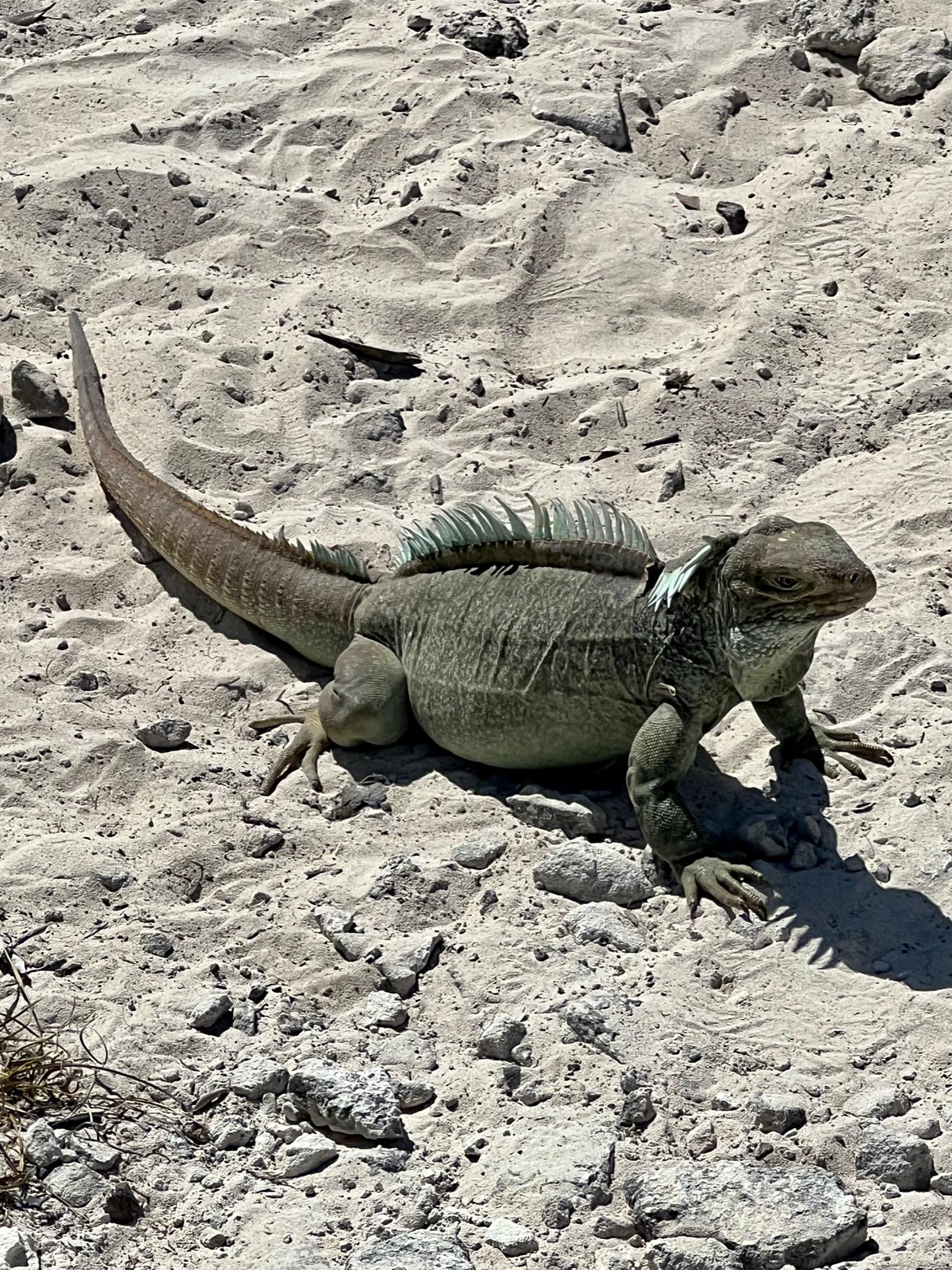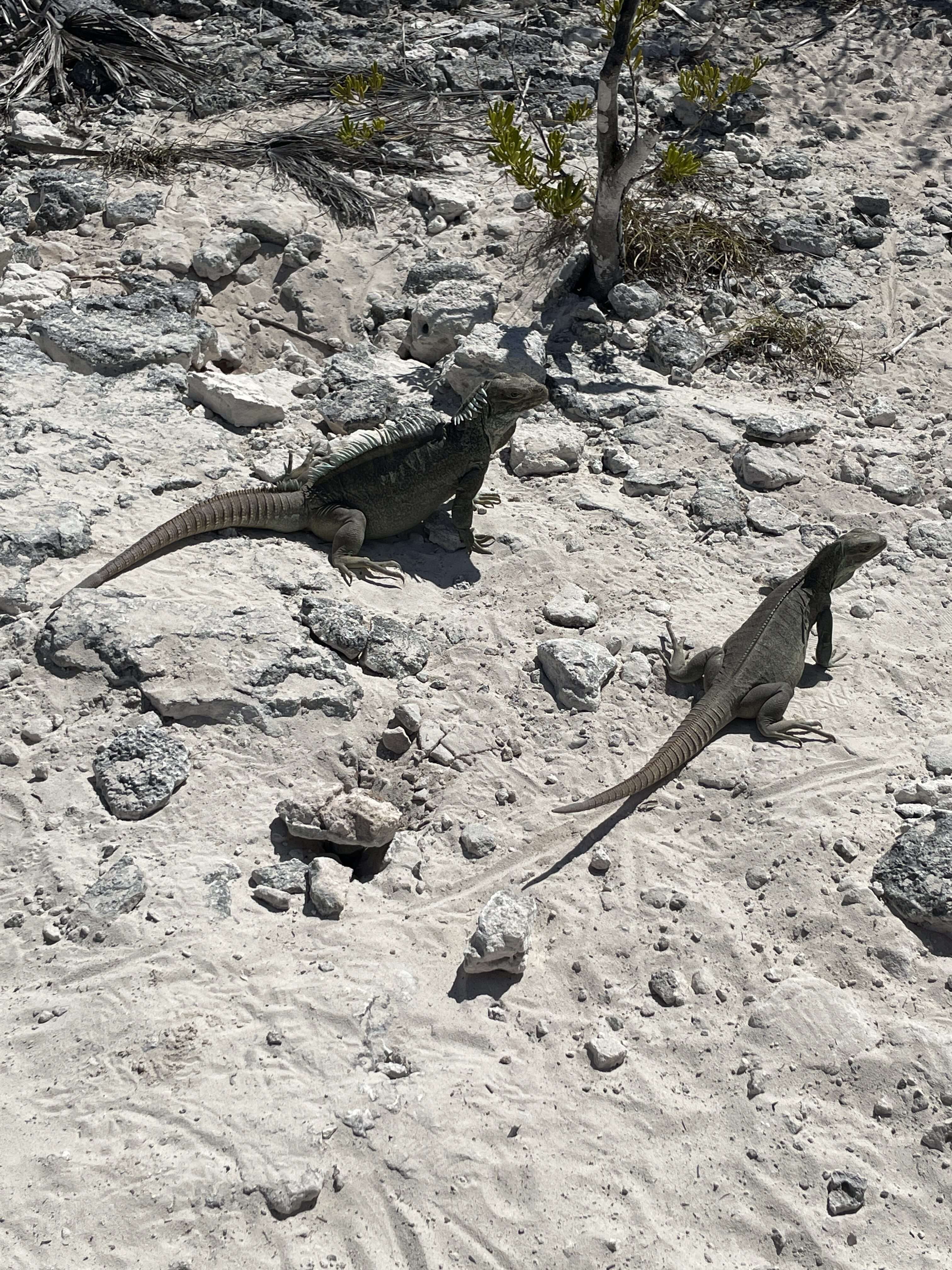 Next we took a very short (literally 2 minute) walk down a sandy path into the middle of the small island. There was a clearing and Mitch laid down some berries on the ground. Soon several iguanas emerged from the brush and started running all around us. Mitch taught us all about the islands’ Rock Iguanas and we enjoyed watching them scurrying around. There was one male and many females, which Mitch said was a good thing because when two males meet, they often fight to the death. We were all glad not to have to witness that!