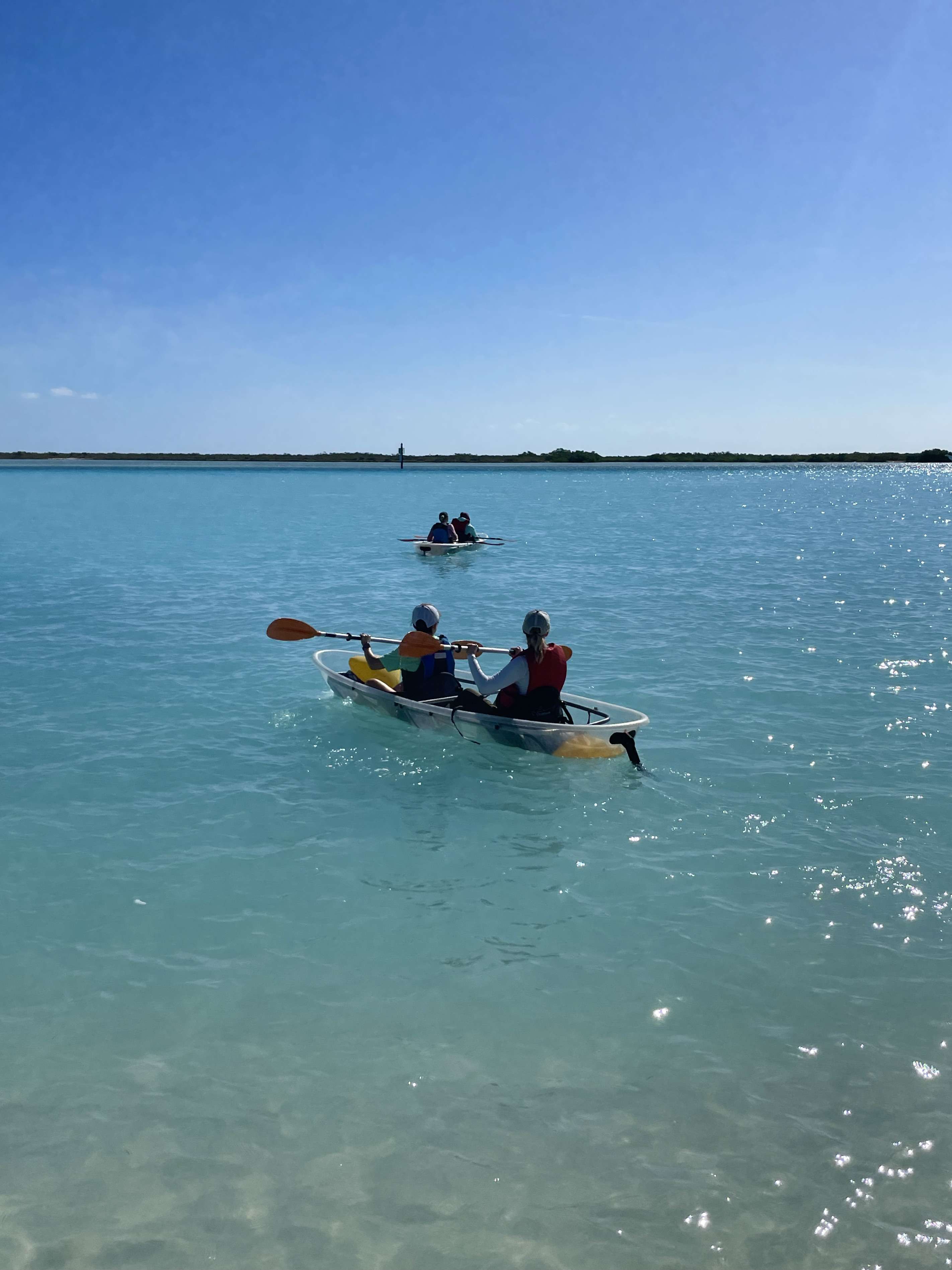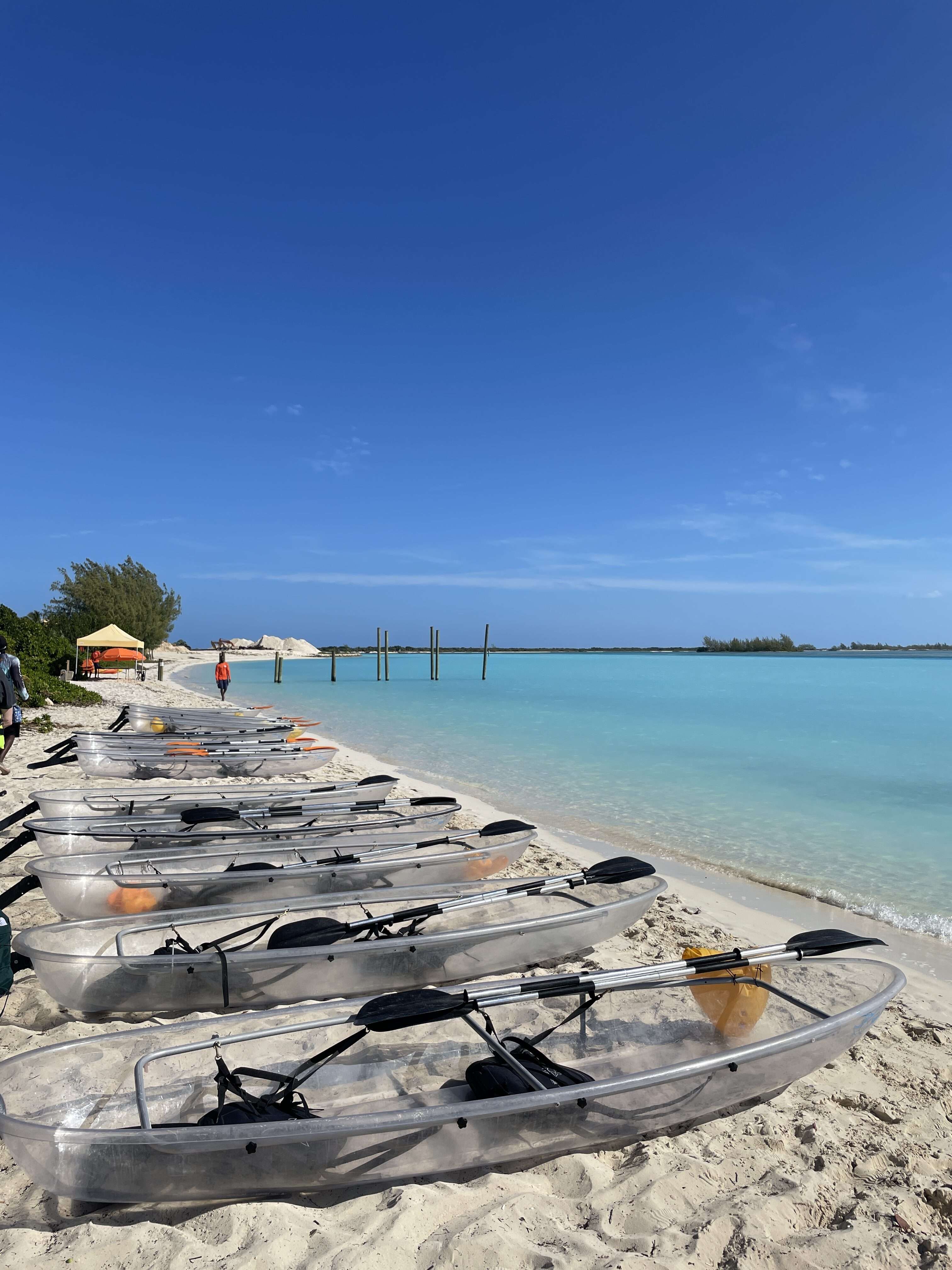 We knew we wanted to get out on the water while we were in Turks and Caicos but weren’t particularly interested in snorkeling or an open water boat trip. Kayaking seemed more our speed and the mangroves seemed like the perfect location. A quick internet search brought up a lot of options for clear kayaks. Although it seemed gimmicky to me at first, the waters are so crystal clear that it made sense to make the boats clear so that you can see what is swimming underneath you.