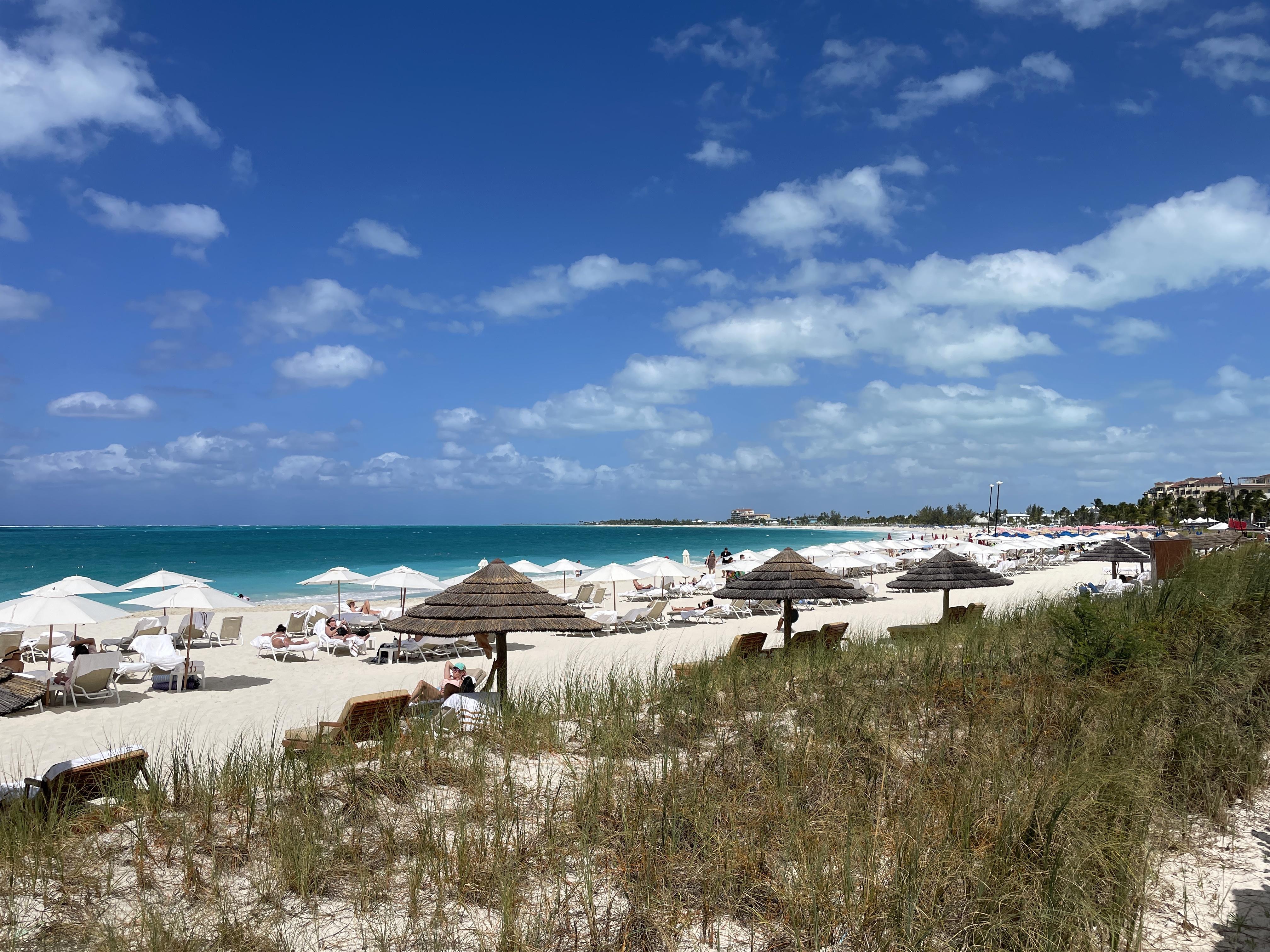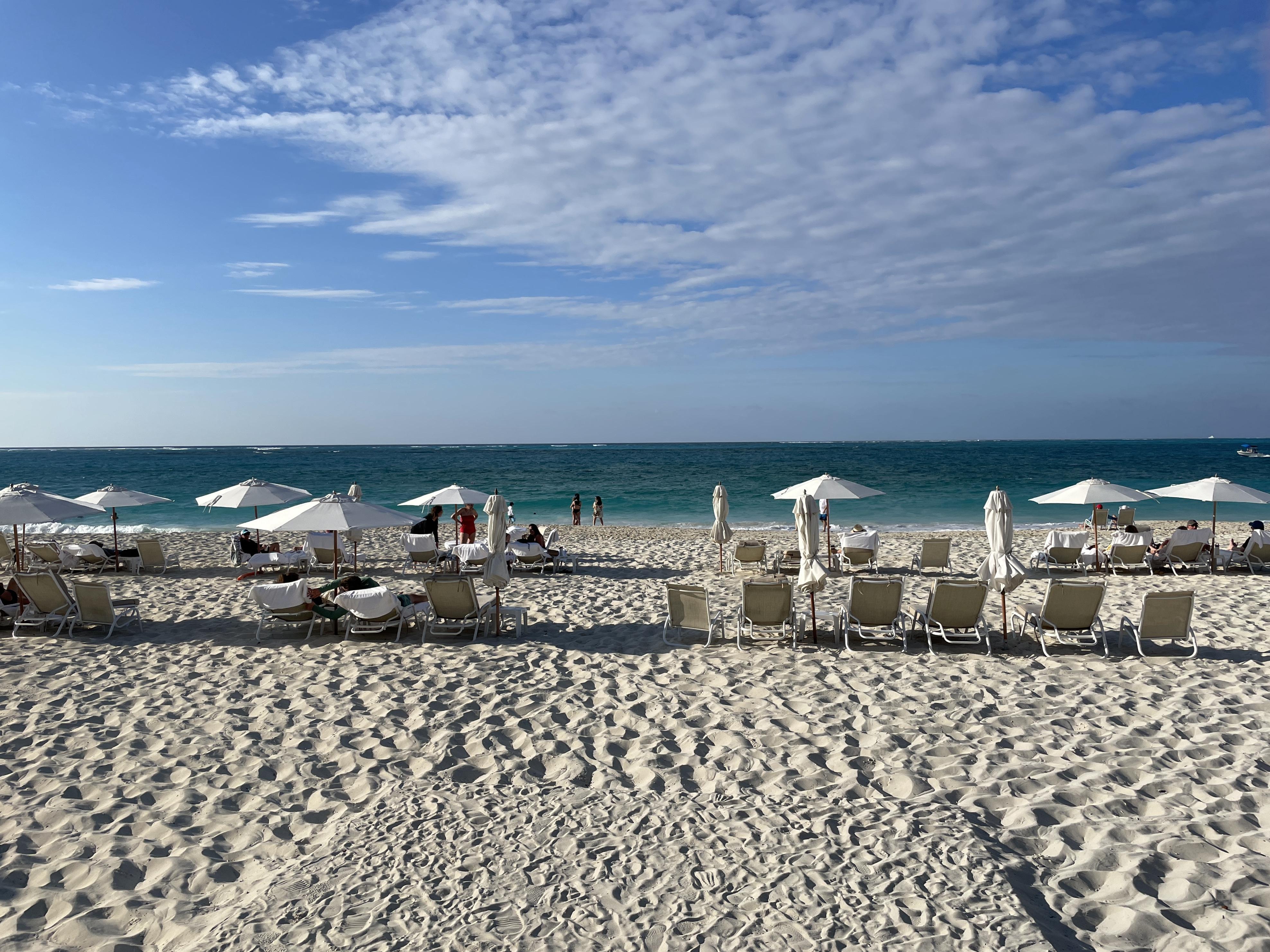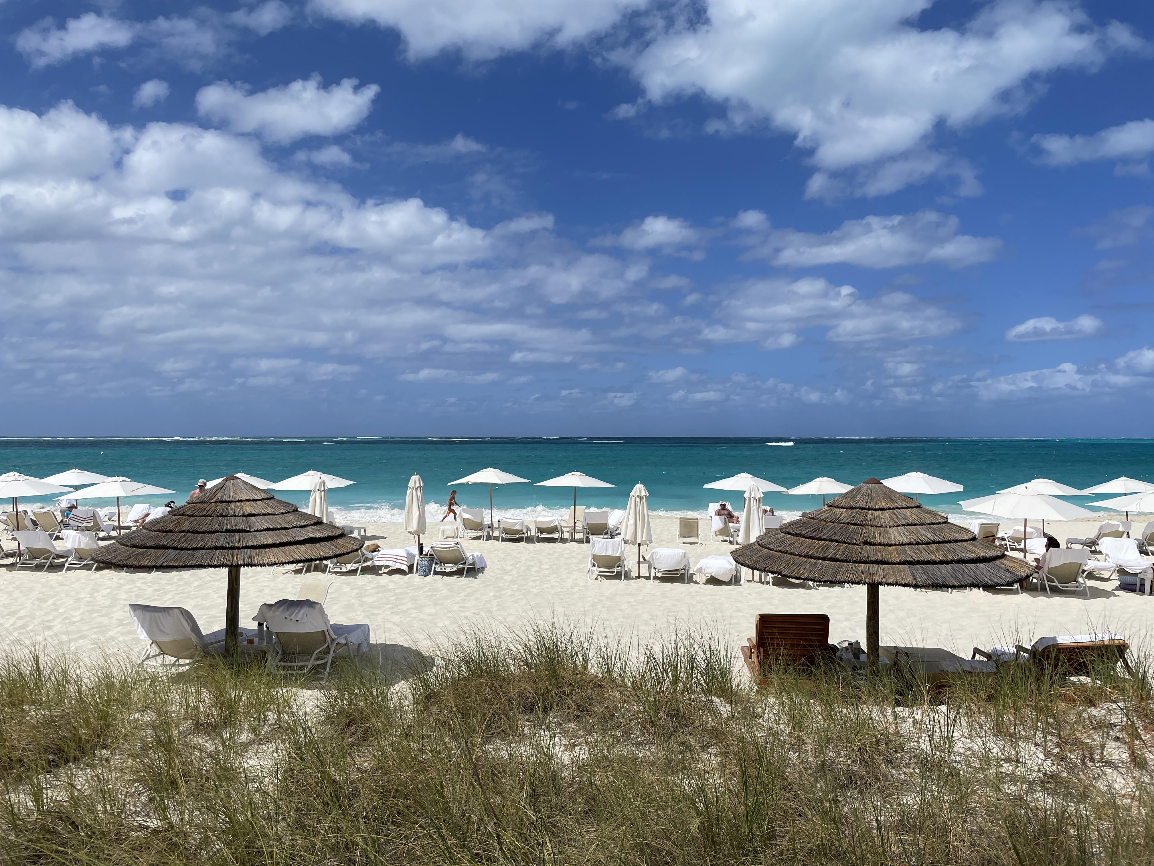 But the beach… that is why everyone comes to Turks and Caicos. And it does not disappoint. The resort sits on a wonderful section of Grace Bay where the beach is wide and beautiful and the water is turquoise and stunning. The resort has many lounge chairs and umbrellas on the beach and a staff member will bring out towels for you and set up your group together. We never had a problem getting a spot and loved the incredible views.