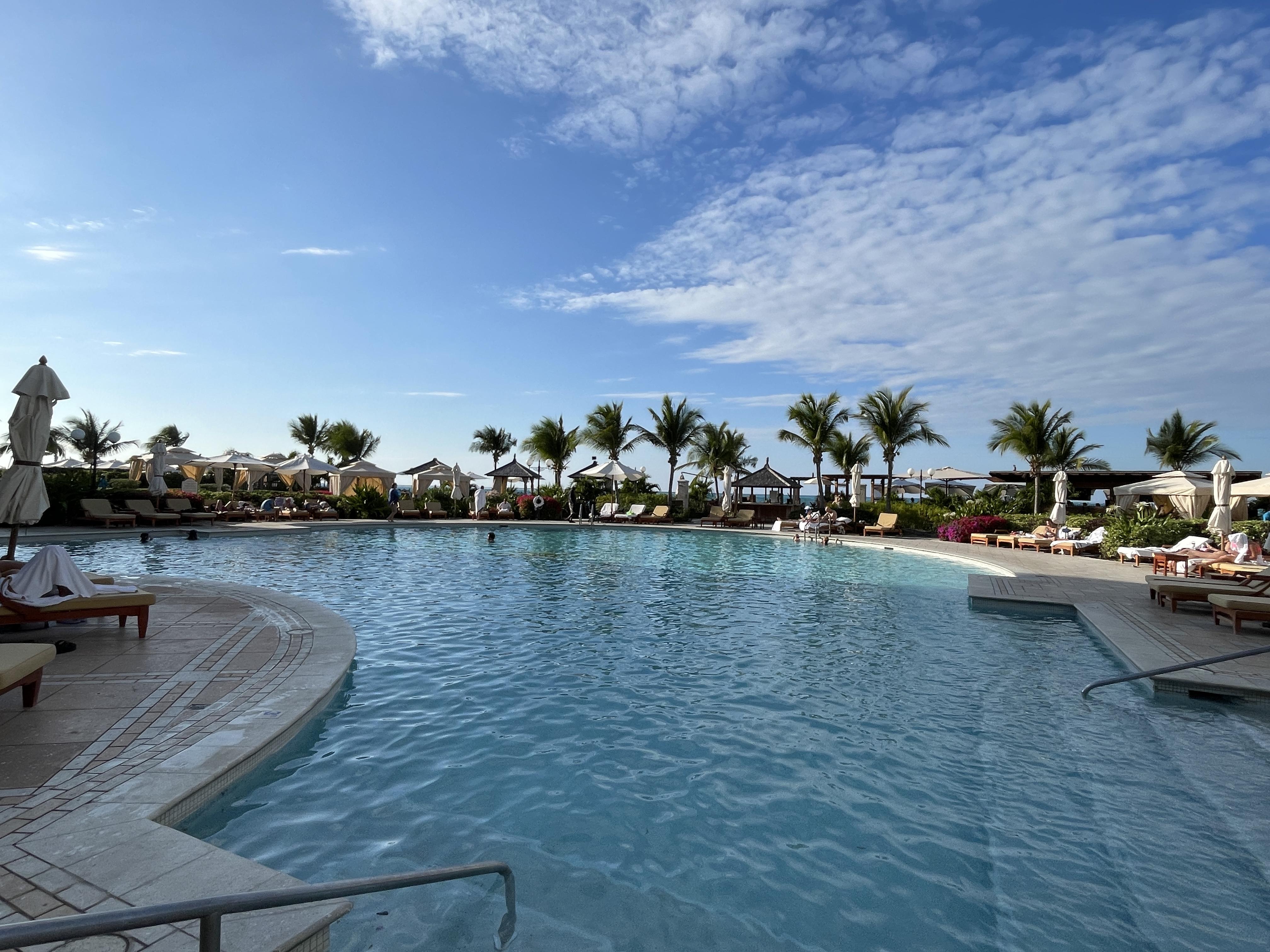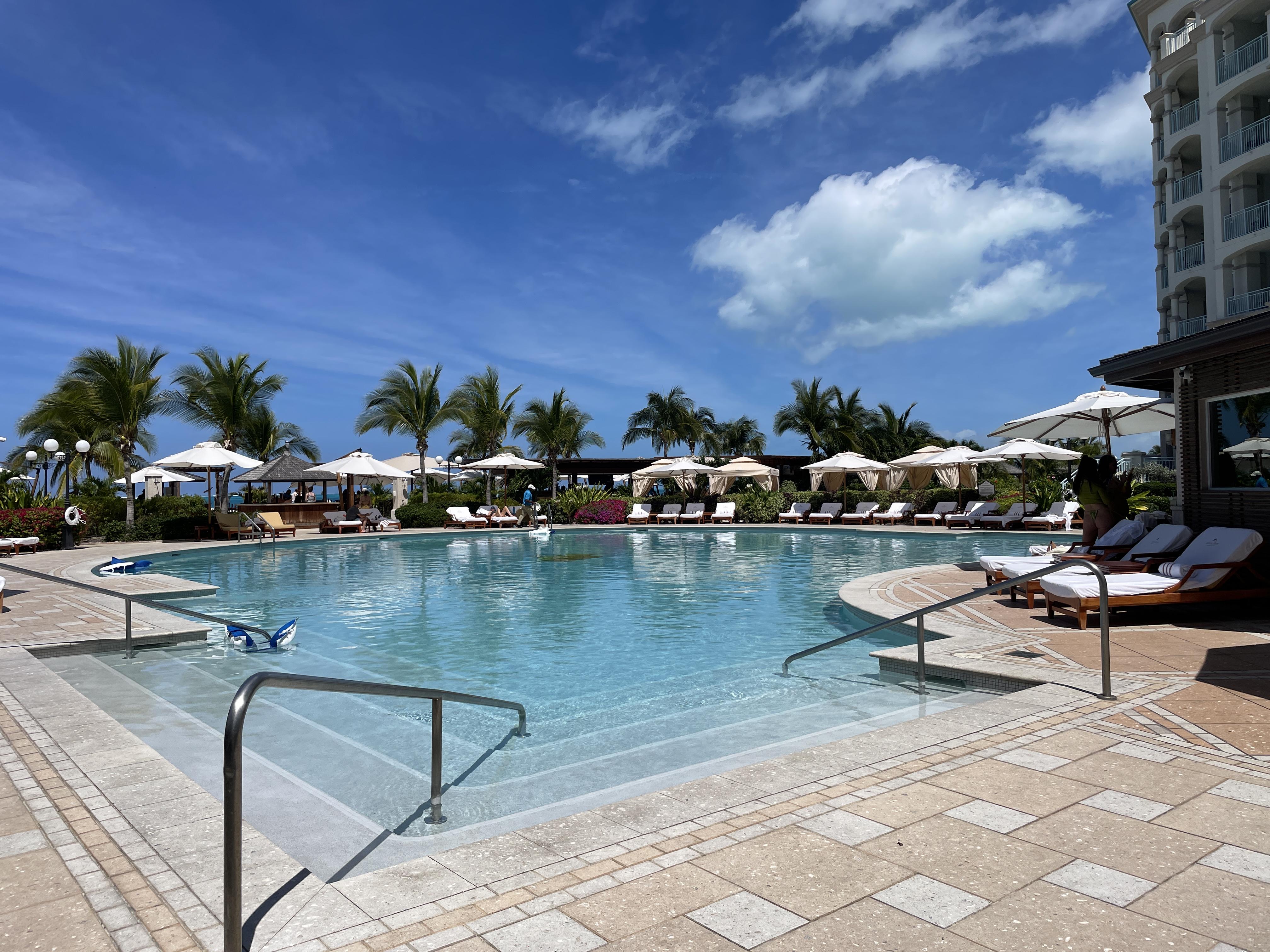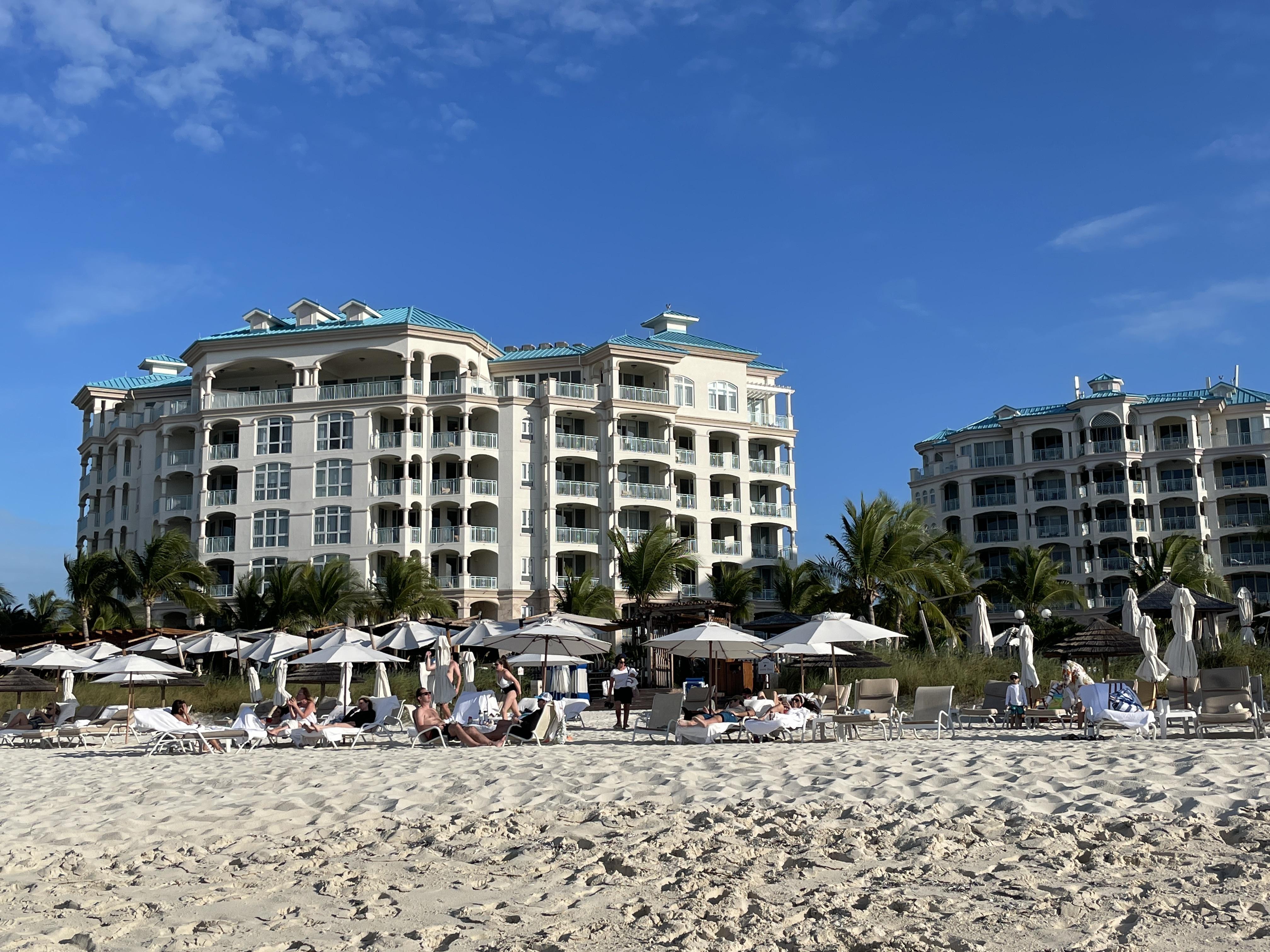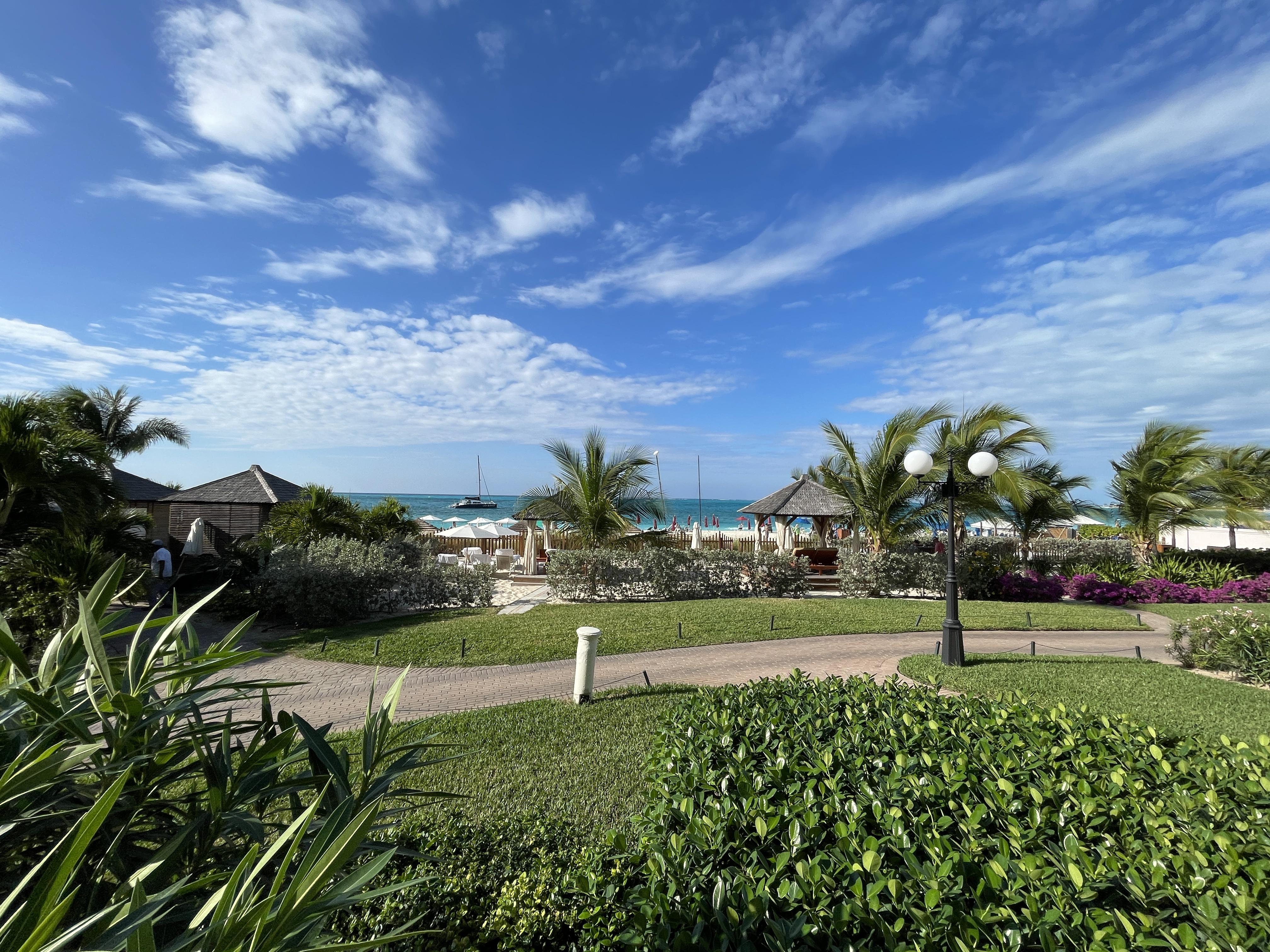 But the beach… that is why everyone comes to Turks and Caicos. And it does not disappoint. The resort sits on a wonderful section of Grace Bay where the beach is wide and beautiful and the water is turquoise and stunning. The resort has many lounge chairs and umbrellas on the beach and a staff member will bring out towels for you and set up your group together. We never had a problem getting a spot and loved the incredible views.