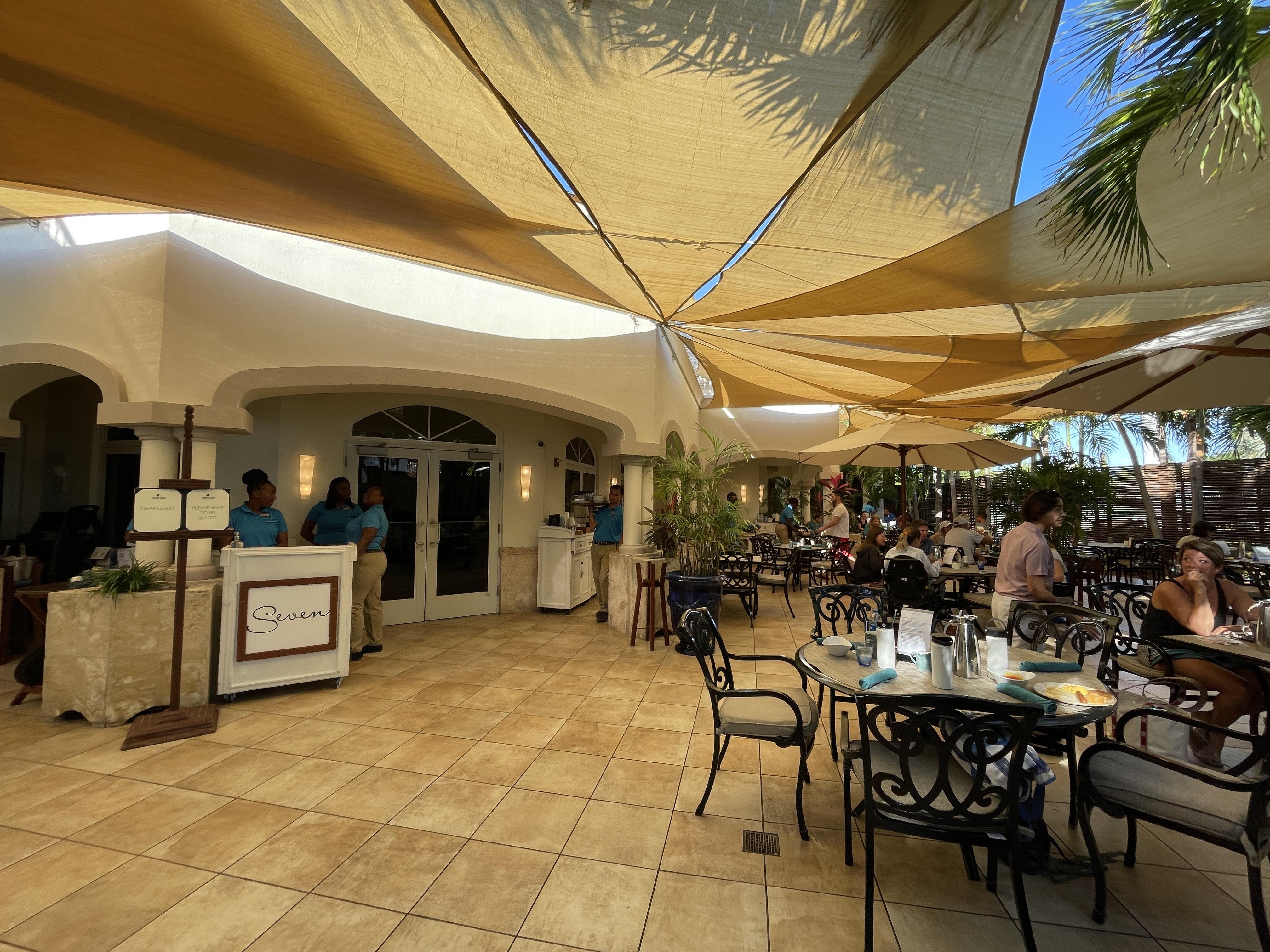 There are also two restaurants on site at the resort – the upscale Seven and the more casual The Deck. (A third restaurant is scheduled to open in April.) Seven requires reservations (of which we had none) but was probably more high-end than we were looking for anyway. (We were also excited to get out and explore the many fabulous restaurants in Grace Bay.) We did eat dinner at The Deck one night and enjoyed the food, oceanfront location, casual atmosphere, and live music. Our stay also included a fabulous breakfast every morning on the patio of Seven. There was a cook-to-order omelet bar, as well as a huge variety of hot and cold breakfast options. Everything except for specialty coffee drinks and alcoholic drinks was included with our stay.