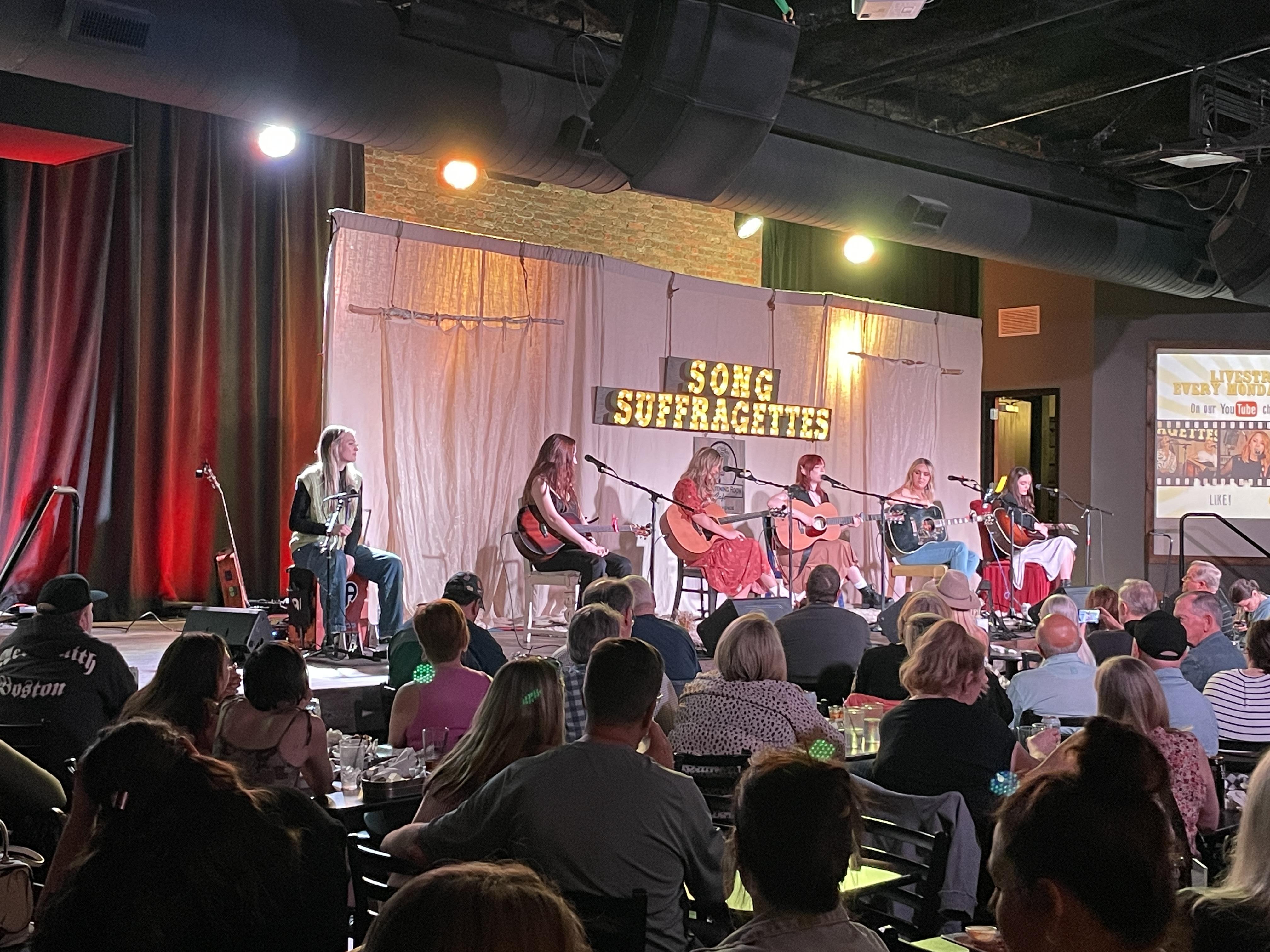 The Song Suffragettes are a recurring act at the Listening Room but with rotating performers. Each show includes 5 up-and-coming female singer-songwriters, some regulars in the group and some newcomers. Their “Let the Girls Play” motto speaks to the difficulty of breaking onto the Nashville music scene as a female performer.